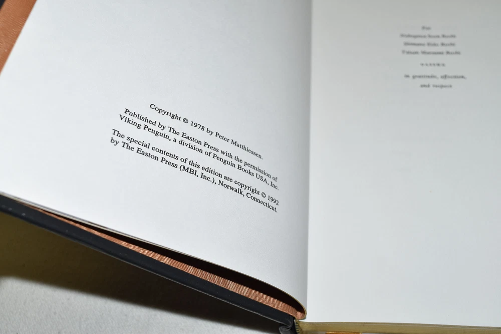 From the Easton Press Collection... The Snow Leopard by Peter Matthiessen Illustrated Collector's Edition Copyright 1992 by The Easton Press Bound in Premium Full Leather This volume contains all of the classic Easton Press trimmings: Premium Leather Silk Moire Endleaves Distinctive Cover Design Hubbed Spine, Accented in Real 22KT Gold Satin Ribbon Page Marker Gilded Page Edges Long-lasting, High Quality Acid-neutral Paper Smyth-sewn Pages for Strength and Durability Beautiful Illustrations A very scarce title in any condition, this Easton Press First Limited Edition is in Fine condition! The front and back covers are both in near perfect condition and the gilded page edges show hardly any wear (see pictures of all gilt sides). There is a faint residue on the second page. This book was published by Easton Press and would be a beautiful addition to your Easton Press collection. Overall, this copy is a grade collector's book. This book is very elusive in this superior condition, as only a limited number of them were ever published, so now is the time to act. Hopefully you can add this book to your collection and enjoy it in the years to come... Please Email Me With Any Questions You Might Have! Shipping Info: Buyer to Pay Shipping and Handling International Bidders Pay Extra Shipping Seller Not Responsible For Uninsured Items Lost or Damaged in Mail Forms of Payment Accepted: Paypal Good luck and happy bidding! Powered by eBay Turbo Lister The free listing tool. List your items fast and easy and manage your active items.