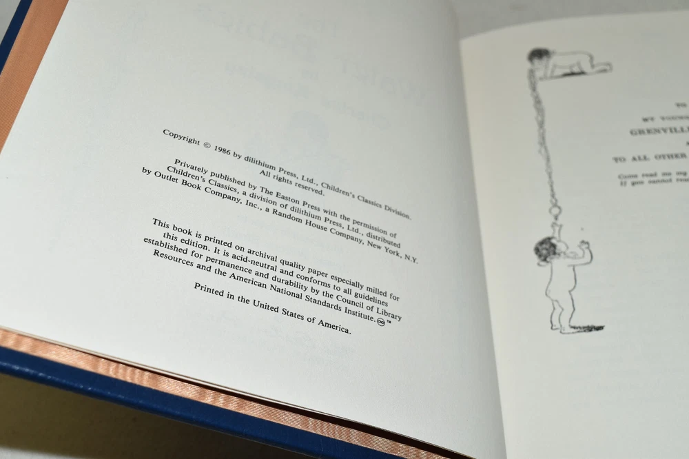 From the Easton Press Collection... The Water Babies by Charles Kingsley Illustrated by Jessie Willcox Smith Collector's Edition Copyright 1986 by The Easton Press Bound in Premium Full Leather This volume contains all of the classic Easton Press trimmings: Premium Leather Silk Moire Endleaves Distinctive Cover Design Hubbed Spine, Accented in Real 22KT Gold Satin Ribbon Page Marker Gilded Page Edges Long-lasting, High Quality Acid-neutral Paper Smyth-sewn Pages for Strength and Durability Beautiful Illustrations A very scarce title in any condition, this Easton Press Limited Edition is in Fine condition. The front and back covers are both in near perfect condition and the gilded page edges show hardly any wear (see pictures of all gilt sides). There is faint bookplate residue on the second page. This book was published by Easton Press and would be a beautiful addition to your Easton Press collection. Overall, this copy is a grade collector's book. This book is very elusive in this superior condition, as only a limited number of them were ever published, so now is the time to act. Hopefully you can add this book to your collection and enjoy it in the years to come... Please Email Me With Any Questions You Might Have! Shipping Info: Buyer to Pay Shipping and Handling International Bidders Pay Extra Shipping Seller Not Responsible For Uninsured Items Lost or Damaged in Mail Forms of Payment Accepted: Paypal Good luck and happy bidding! Powered by eBay Turbo Lister The free listing tool. List your items fast and easy and manage your active items.