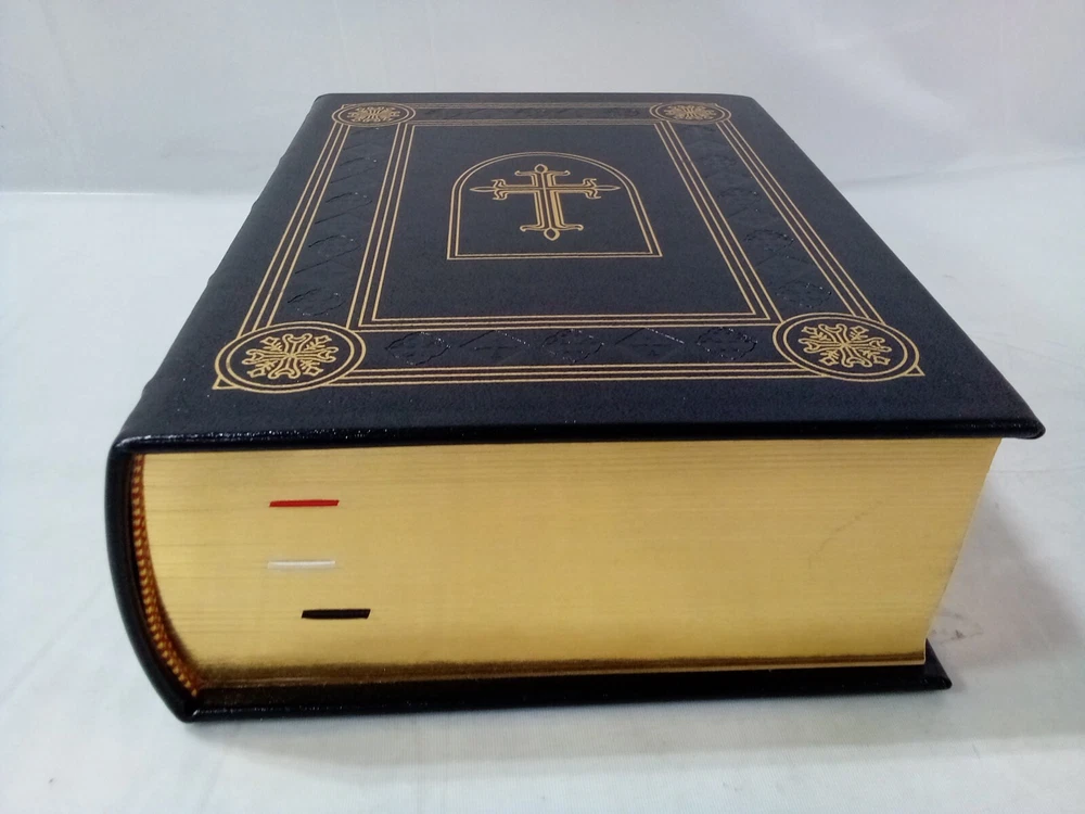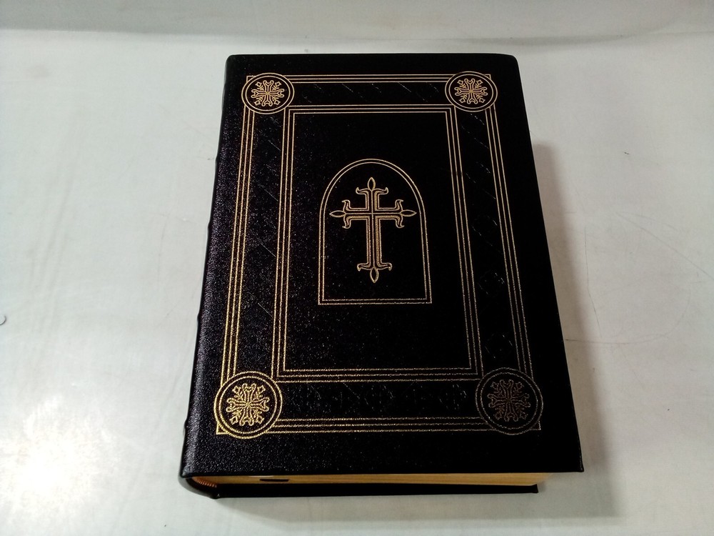 Tap here for more details on Easton Press The Holy Bible Large Leather Bound Book, King James Version This exquisite leather-bound book is a must-have for any collector of Christian collectibles. The Easton Press The Holy Bible Large Leather Bound Book, King James Version is a magnificent addition to your library. Its beautiful cover and intricate details make it a valuable item for any religion and spirituality enthusiast. The book is bound in high-quality leather and features the King James Version of the Bible. It is perfect for those who are looking for a unique and elegant item to add to their collection. This book is an excellent gift for anyone who loves Christianity and appreciates fine art.