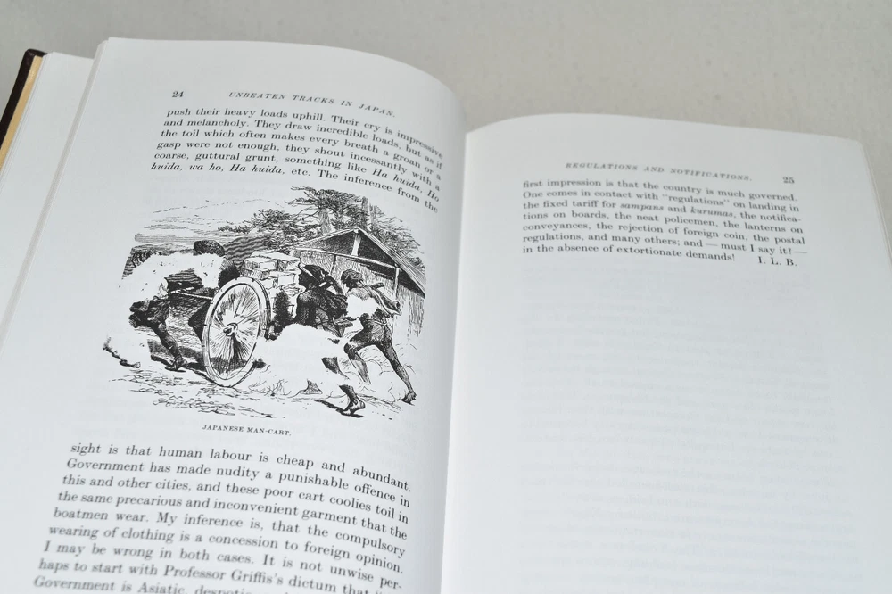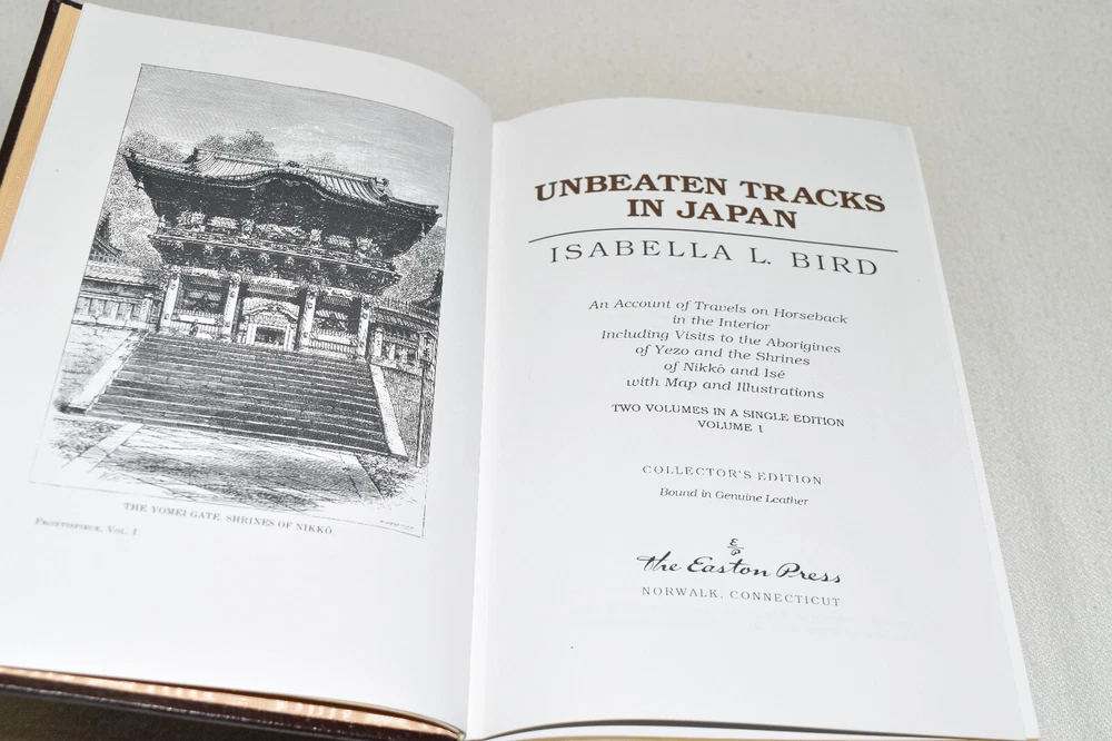 From the Easton Press Collection... Unbeaten Tracks in Japan An Account of Travels on Horseback in the Interior Including Visits to the Aborigines... by Isabella L. Bird with Maps and Illustratations Collector's Edition Copyright 1992 by The Easton Press Bound in Premium Full Leather This volume contains all of the classic Easton Press trimmings: Premium Leather Silk Moire Endleaves Distinctive Cover Design Hubbed Spine, Accented in Real 22KT Gold Satin Ribbon Page Marker Gilded Page Edges Long-lasting, High Quality Acid-neutral Paper Smyth-sewn Pages for Strength and Durability Beautiful Illustrations A very scarce title in any condition, this Easton Press First Limited Edition is in Fine condition. The front and back covers are both in terrific condition and the gilded page edges show light wear on the bottom edge (see pictures of all gilt sides). There is a faint residue on the second page. This book was published by Easton Press and would be a beautiful addition to your Easton Press collection. Hopefully you can add this book to your collection and enjoy it in the years to come... Please Email Me With Any Questions You Might Have! Shipping Info: Buyer to Pay Shipping and Handling International Bidders Pay Extra Shipping Seller Not Responsible For Uninsured Items Lost or Damaged in Mail Forms of Payment Accepted: Paypal Good luck and happy bidding! Powered by eBay Turbo Lister The free listing tool. List your items fast and easy and manage your active items.