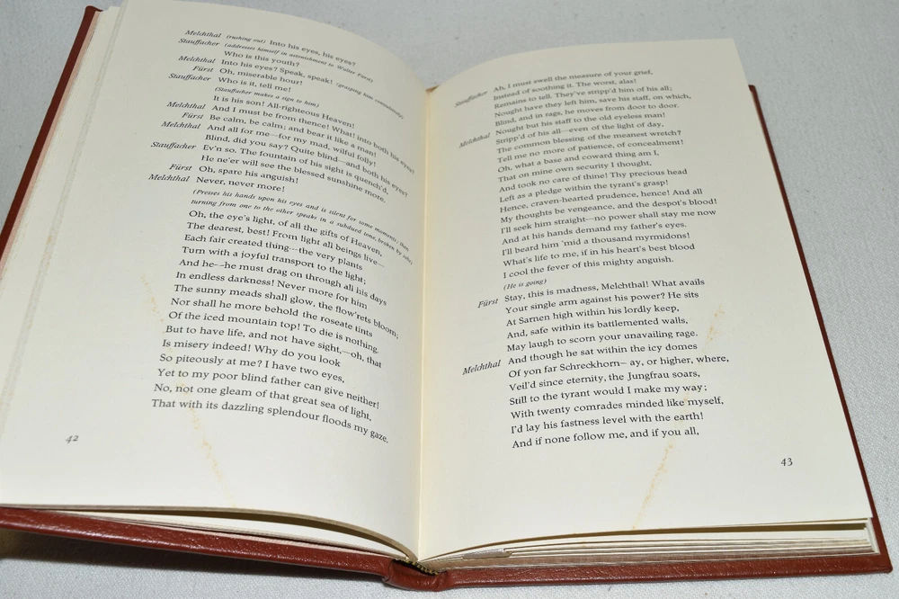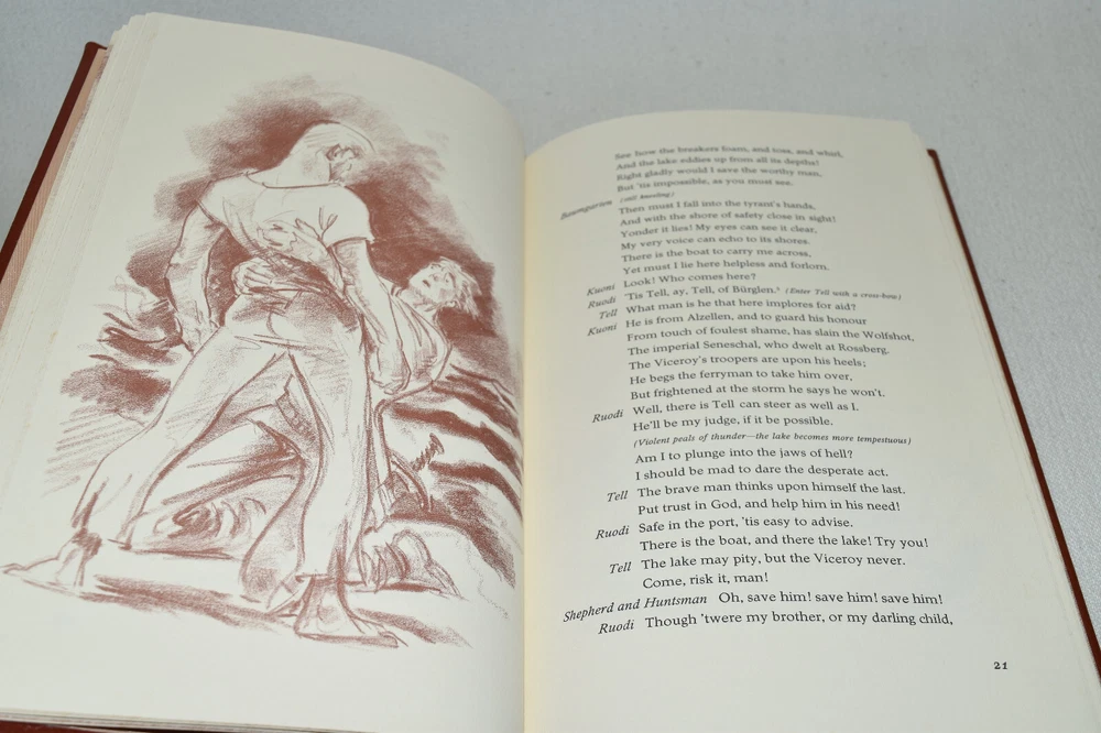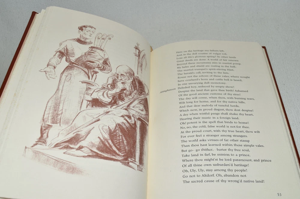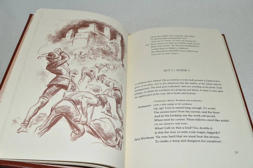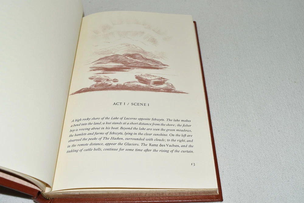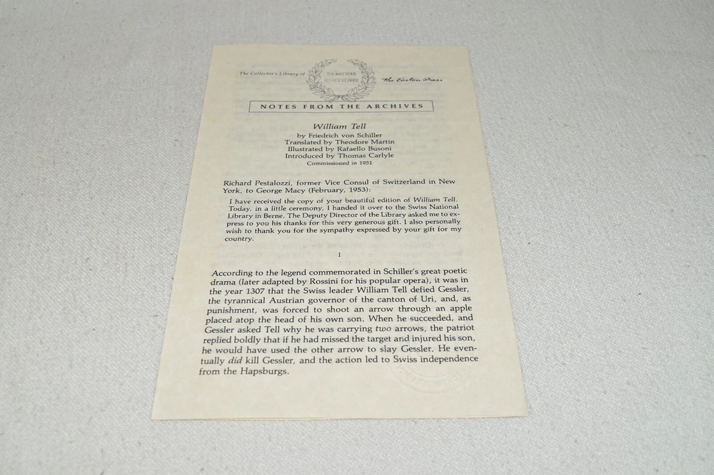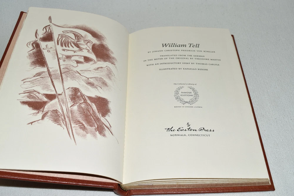 This Easton Press edition of *William Tell* is absolutely stunning! The rich leather binding, gold accents, and gilded edges give it a luxurious feel. The illustrations by Busoni are beautifully detailed, and the silk ribbon bookmark is a nice touch. A true collector’s piece—rare and well-preserved. Perfect for any classic literature lover!