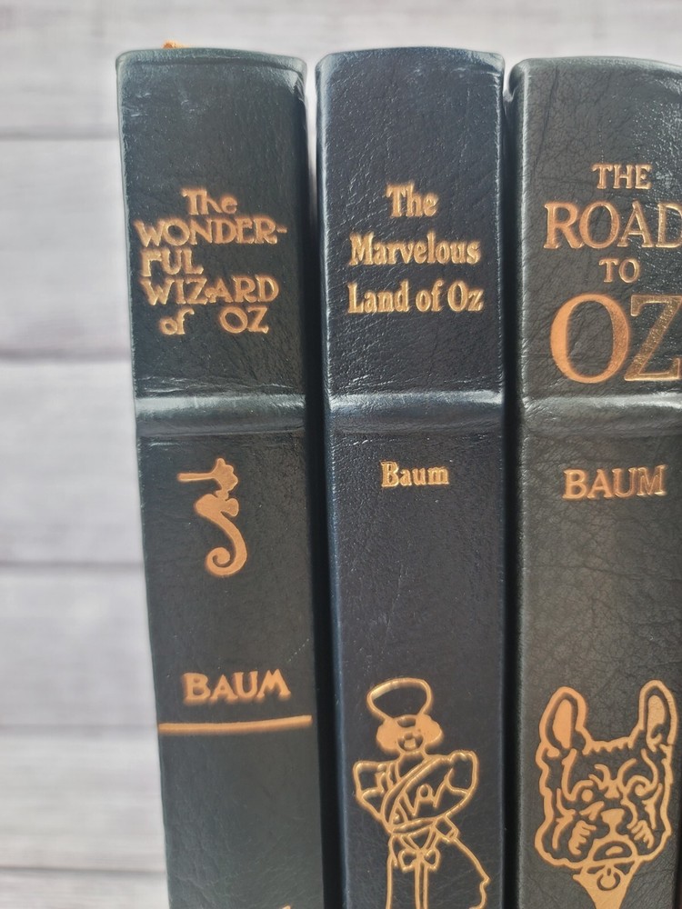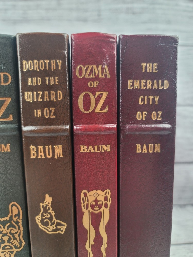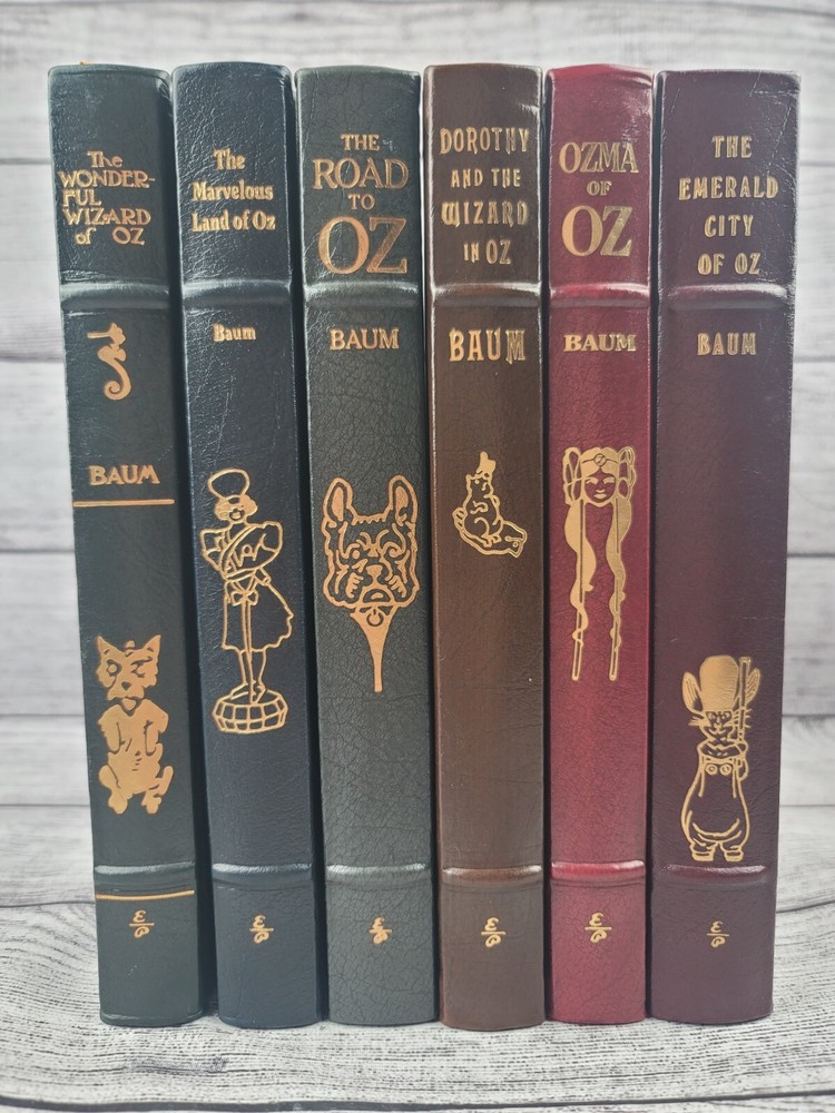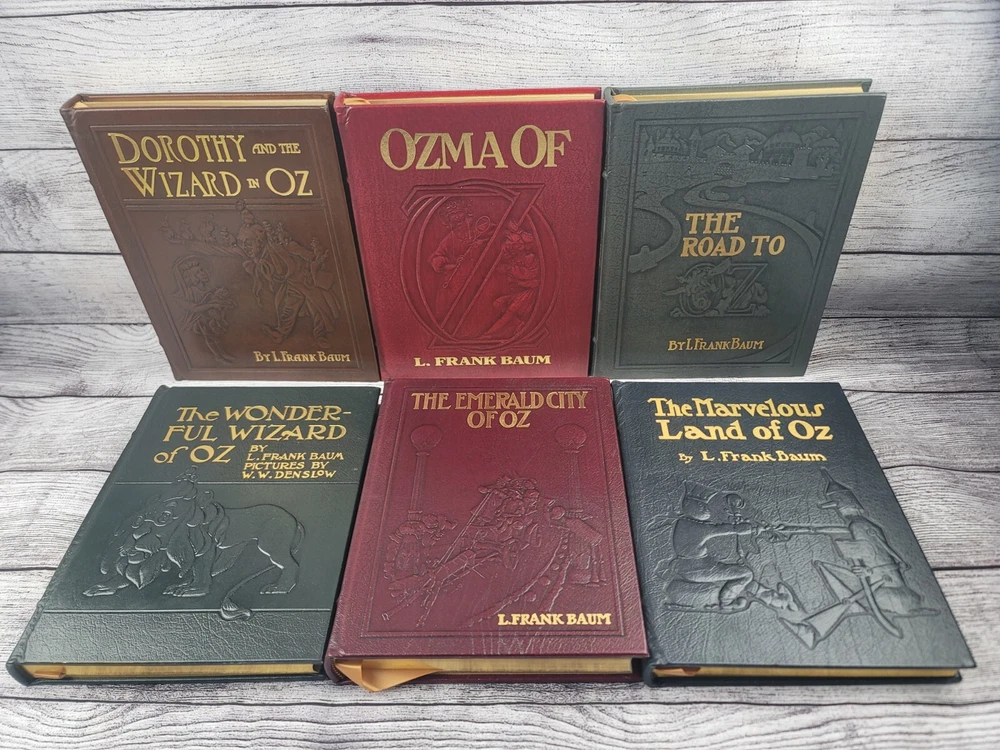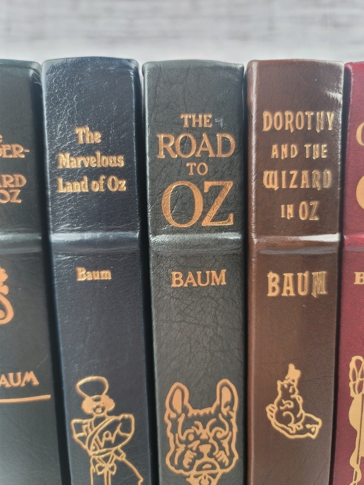 Pre-owned condition They appear unread, but due to storage, there is some damage to the leather- pictured No odors 1. The Wonderful Wizard of Oz, pictures by W W Denslow 2.The Marvelous Land of Oz, pictures by John R. Neill 3. Dorothy and the Wizard of Oz, illustrated by John R. Neill 4. The Emerald City of Oz, illustrated by John R. Neill 5. Ozma of Oz, illustrated by John R. Neill 6. The Road to Oz, illustrated by John R. Neill PLEASE REVIEW ALL IMAGES AS THEY ARE ALSO AN IMPORTANT PART OF THE DESCRIPTION CHECK OUT MY OTHER ITEMS IN MY STORE! You can shop with confidence as I have a 100% positive feedback rating. I appreciate my customers and will do my very best to keep you happy and satisfied. Thanks for looking! Where does all this stuff come from? I acquire most items from estates and retailers. Once they are in my possession, they come from a Smoke Free Home. Condition: I try to take the best pictures to depict the true condition of the item. Some computer screens and lighting may throw the colors off a bit, so keep that in mind when purchasing. Questions? If you have a question, feel free to contact me and I will answer as soon as I can. Shipping: Shipping will be FREE to the lower 48 states. International buyers will be charged exact shipping. I will ship out same or next business day once payment is received. Immediate payment is preferred. Only serious buyers, please. Please verify your address PRIOR TO paying- I only ship to the address eBay provides me with. I cannot change address after the order is placed. If you need an address changed, message me and I will cancel the sale and you will then be able to purchase again with the correct address. Packing: I recycle boxes and packing materials, so your item may come in a homemade box fitted around your item. I pack all items safely and securely, and make sure there is no risk of damage. Keep in mind, unfortunately, things happen, so if your item arrives damaged, PLEASE let me know and send me pictures so that I can inform the carrier of damage. International buyers ? please note : Import duties, taxes, and charges aren't included in the item price or postage cost. These charges are the buyer's responsibility. Please check with your country's customs office to determine what these additional costs will be prior to bidding or buying.