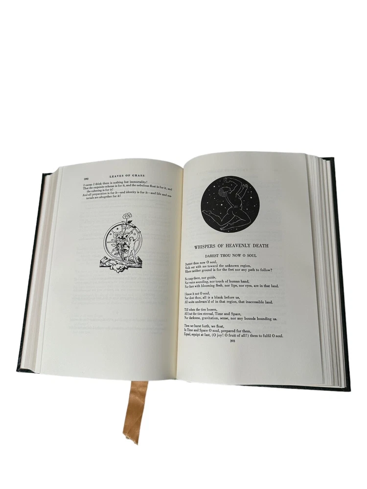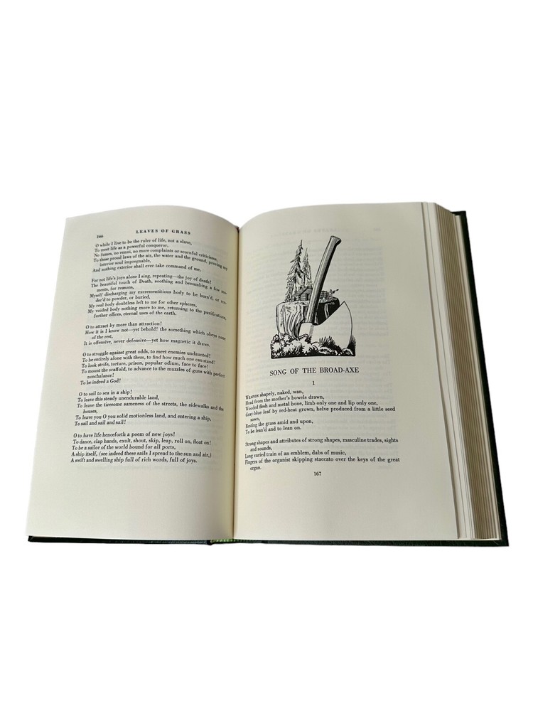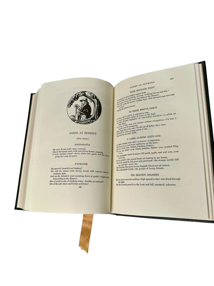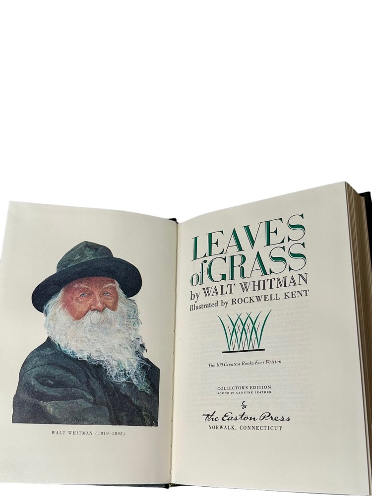 Very Nice Condition Easton Press Walt Whitman Leaves of Grass Poetry Collection Leather Hardcover Book, Collector's Edition, The 100 Greatest Books Ever Written Series, Illustrated, Gold Gilded Pages, Ribbon Marker Some of the places on the gold gilded pages are beginning to show wear due to age. Please see pictures
