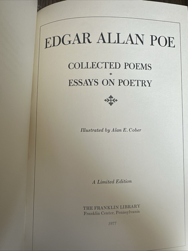 The product is a limited edition leather-bound collection of poems by Edgar Allan Poe, published by Franklin Library in 1977. This luxurious edition features silk moire endpapers, full leather binding, and is designated as a collector's item. The poems are in English and are original, making it a valuable addition to any literature and fiction collection, especially for fans of Poe's work.