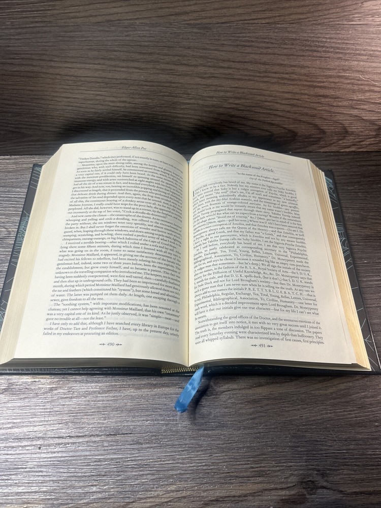 This is a rare opportunity to own a complete collection of Edgar Allan Poe's works, bound in a beautiful leather cover. The book features 744 pages of the author's fiction, including classic horror stories and short tales. The illustrator has done a fantastic job of bringing the stories to life with beautiful artwork. The book is in great shape and has been well-maintained. It measures 9.2 inches in length, 6.2 inches in width, and 1.6 inches in height. The publication year is 2011, and the book is in English. This is a must-have for any fan of Edgar Allan Poe or horror fiction.