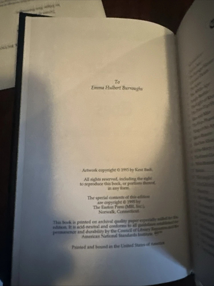 This Edgar Rice Burroughs Tarzan of the Apes’ Easton 1995 Leather HC Collectible came from my fathers private book collection. I remember when my father found this and purchased it and I said it looks like a nice book to sit down and read but I don’t think he got about to it. Overall it like new and a great buy at $100.