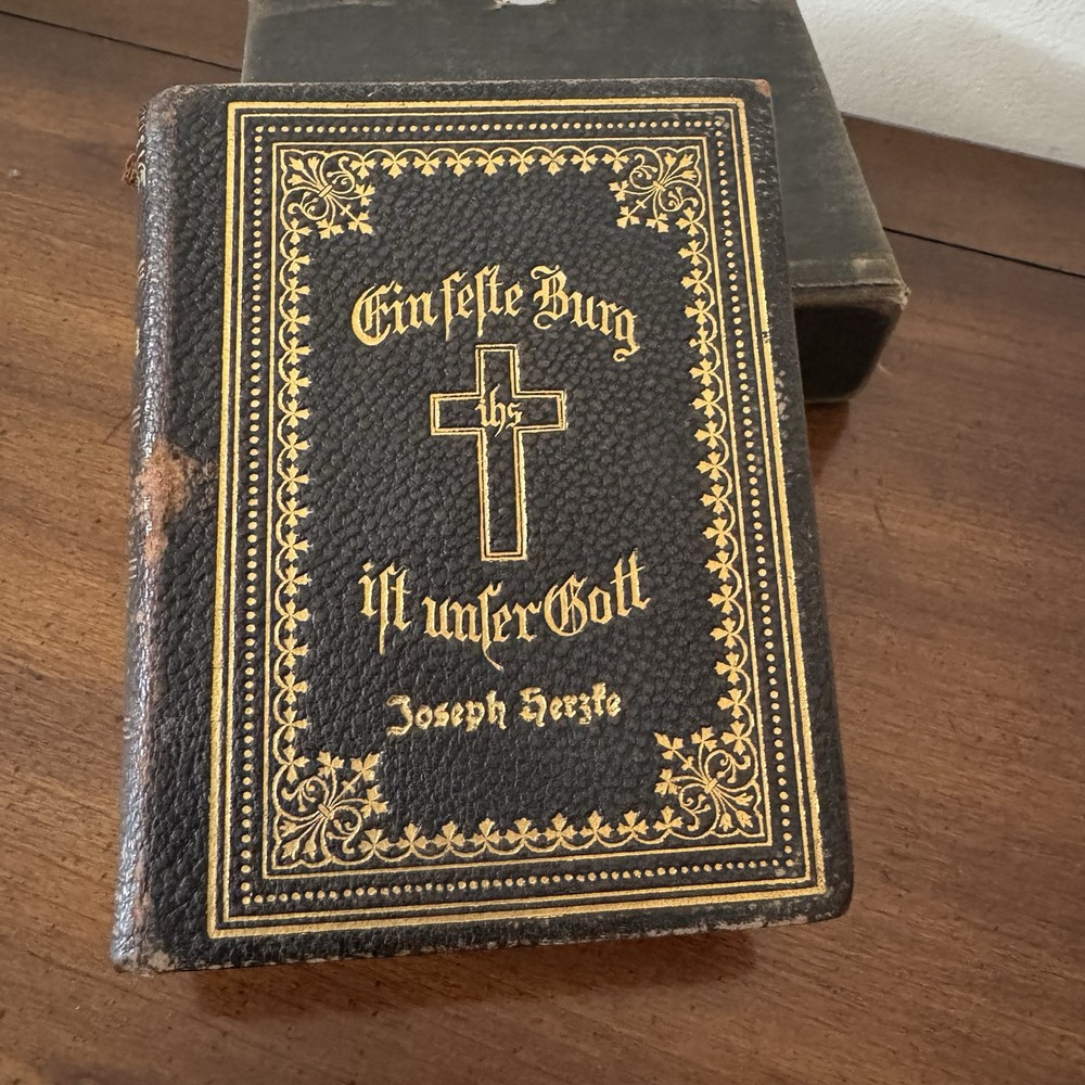 The product is a 1915 German religious book titled "Ein feste Burg ist unser Gott" which translates to "A firm fortress is our God." It is a leather-hardcover book that would appeal to collectors interested in antique religious texts. The language and author of the book are both listed as "German," suggesting that it may be a valuable addition to any library focusing on religious literature from the early 20th century.