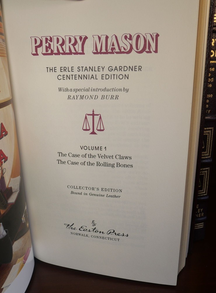 Perry Mason 4 Volume Collection Author: Erle Stanley Gardner Title: Perry Mason 4 Volume Collection Publication: Norwalk: The Easton Press, 1989 Edition: Collector's Edition Description: Collector's editions. Bound in full leather. Measuring approximately 9.25" x 6.25", with 202, 240, 233, 194 numbered pages respectively. These volumes are in near fine condition. Gilt lettering and design on spine, boards, and edges are bright and well preserved. Perry Mason is an American criminal defense lawyer who is the main character in the detective fiction works written by Erle Stanley Gardner. Perry Mason features in 82 novels and 4 short stories, all of which involve a client being charged with murder, usually involving a preliminary hearing or jury trial. Please view the many other rare titles available for purchase at our store. We are always interested in purchasing individual or collections of fine books. Inventory #(N5-49). Seller ID: 4299 Subject: Fiction , Leather-Bound Ernestoic Books Terms All orders ship within two business days. Standard mail is USPS Media Mail. Expedited and international shipping are also available. We offer combined shipping on multiple orders. All items are guaranteed to be as described or they may be returned within 30 days of receipt for a full refund. This listing was created by Bibliopolis.