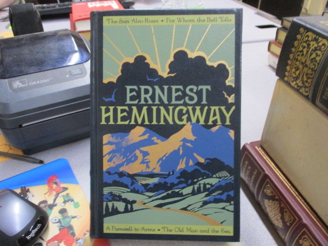 Product Category : Books ISBN : 1435129849 Title : Ernest Hemingway: Four Novels (The Sun Also Rises / For Whom the Bell Tolls / A Farewell to Arms / The Old Man and the Sea) EAN : 9781435129849 Authors : Ernest Hemingway Binding : Leather Bound Publisher : Barnes & Noble Publication Date : 2011-01-01 Pages : 878 Signed : False First Edition : False Dust Jacket : False Height : 1.9000 inches Width : 6.4000 inches Length : 9.4000 inches Weight : 2.9000 pounds Keywords : fiction Condition : Good Great condition hardback. Pages are clean and crisp. Gold edging is bright. Ribbon is in great shape.
