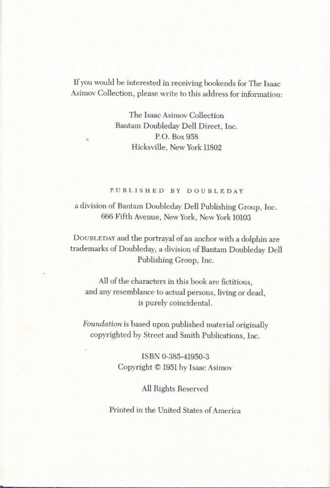 FOUNDATION The Isaac Asimov Collection by Isaac Asimov 1972, The Isaac Asimov Collection Edition, Doubleday & Co., New York, 227 pages. Published in this lush, special edition, this is Asimov’s first of the Foundation Science Fiction stories. Hardcover book in Like New condition, tight and clean with no marks. Pages are clean and white. Blue faux-leather with gilt title on spine and illustration on front. No dust jacket as issued. Visit My Store (See Below) or Check "Popular Categories" for More Items of Interest.