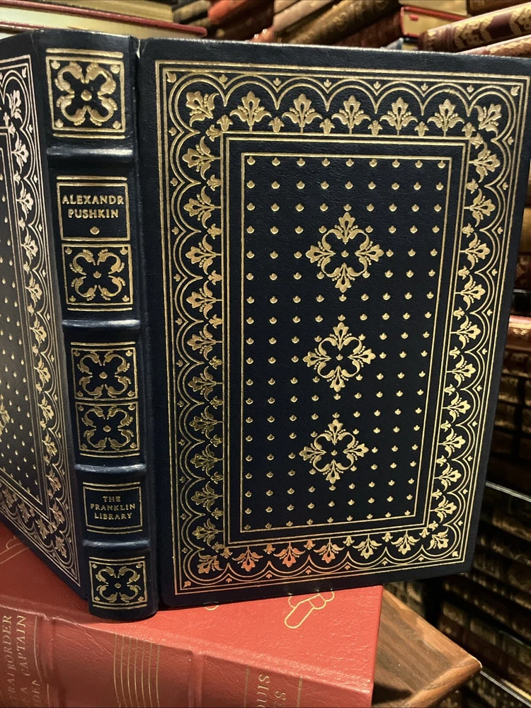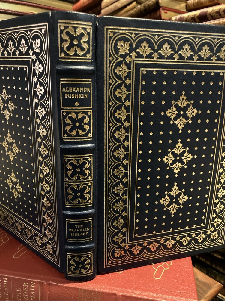 This gorgeous Franklin Library edition is a collector's dream! The luxurious navy blue leather, gold gilding, and elegant illustrations make Pushkin’s classic tales feel even more special. The Smyth-sewn binding and silk end leaves ensure durability, while the rich translation captures the spirit of the original. A truly timeless piece for any literature lover—highly recommended for both reading and display!