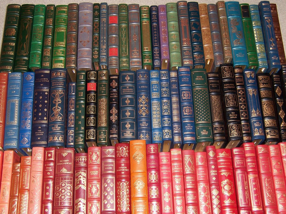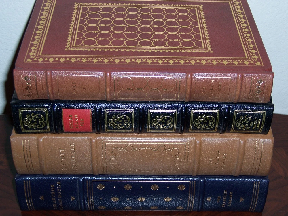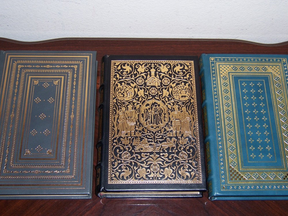 Exclusively Published by Franklin Library for Subscribers to the Limited Edition of THE COLLECTED STORIES OF THE WORLD'S GREATEST WRITERS complete in 100 volumes by various authors, and illustrators Many illustrations by various artists Copyright by Franklin Library Hubbed Spine, Bound in Premium Full Leather Distinctive Cover Design, Profusely Illustrated Moire Endleaves, Satin Ribbon Page Marker Accented in Real 22KT Gold, Gilded Page Edges Smyth-sewn Pages for Strength and Durability Long-lasting, High Quality Acid-neutral Paper LIST OF TITLES: This special collection includes the world's greatest story-tellers, such as Aesop, Boccaccio, Grimm, Poe, Tolstoy, Twain, and many more, and were published by the Franklin Library from 1977 to 1985: 1. 222 Fables, Fully Indexed by Aesop 2. 74 Fairy Tales by Hans Christian Andersen 3. Winesburg, Ohio by Sherwood Anderson 4. 32 Droll Stories by Honoré de Balzac 5. Thirteen O’Clock – Stories of Several Worlds by Stephen Vincent Benét 6. In the Midst of Life - Tales of Soldiers and Civilians by Ambrose Bierce 7. Stories From theDecameronby Giovanni Boccaccio 8. 18 Stories by Heinrich Böll 9. Ficciones by Jorge Luis Borges 10. 27 Stories by Erskine Caldwell 11. Exile and the Kingdom by Albert Camus 12. Breakfast at Tiffany’s and Three Stories by Truman Capote 13. Alice’s Adventures in Wonderland and Through the Looking-Glass by Lewis Carroll 14. The Troll Garden & Obscure Destinies by Willa Cather 15. Three Exemplary Novels by Miguel de Cervantes 16. Canterbury Tales by Geoffrey Chaucer 17. Peasants and 8 Other StoriesAnton Chekhov 18. Stories by Sidonie Gabrielle Colette 19. Heart of Darkness and 10 Other Tales by Joseph Conrad 20. Maggie: A Girl of the Streets and 22 Selected Stories by Stephen Crane 21. Three Christmas Books by Charles Dickens 22. Seven Gothic Tales of Isak Dinesen 23. Notes from Underground, The Gambler, and Poor People by Fyodor Dostoevsky 24. The Best of Sherlock Holmes by Sir Arthur Conan Doyle 25. The Best (14) Short Stories by Theodore Dreiser 26. 36 Stories by Alexandre Dumas 27. Scenes of Clerical Life by George Eliot 28. These Thirteen by William Faulkner 29. One Basket by Edna Ferber 30. 28 Stories of F. Scott Fitzgerald 31. Three Tales by Gustave Flaubert 32. The Apple Tree and Other Tales by John Galsworthy 33. Taras Bulba and 8 Other Tales by Nikolai Gogol 34. This Gun for Hire, The Confidential Agent, The Ministry of Fear by Graham Greene 35. The Ranger and 3 Other Stories by Zane Grey 36. 100 Fairy Tales by The Brothers Grimm 37. The Continental Op by Dashiell Hammett 38. Wessex Tales by Thomas Hardy 39. Uncle Remus by Joel Chandler Harris 40. 16 California Stories by Bret Harte 41. 35 Stories by Nathaniel Hawthorne 42. The First Forty-Nine Stories by Ernest Hemingway 43. 45 Selected Stories by O. Henry 44. Stories of Five Decades by Hermann Hesse 45. 4 Tales by E. T. A. Hoffmann 46. Laughing to Keep from Crying and 25 Jesse Semple Stories by Langston Hughes 47. 21 Collected Short Stories by Aldous Huxley 48. The Sketch Book of Geoffrey Crayon Gent. by Washington Irving 49. Seven Tales by Henry James 50. The Country of the Pointed Firs and 4 Stories by Sarah Orne Jewett 51. Dubliners by James Joyce 52. The Collected Stories of Franz Kafka 53. 17 Stories by Rudyard Kipling 54. Round Up by Ring Lardner 55. Four Short Novels by D. H. Lawrence 56. 13 Stories by Sinclair Lewis 57. 16 Tales of the Northland by Jack London 58. The Magic Barrel and Idiots First by Bernard Malamud 59. 5 Stories by Thomas Mann 60. 73 Short Stories by Katherine Mansfield 61. Mr. Moto’s Three Aces by John P. Marquand 62. 14 Selected Stories by W. Somerset Maugham 63. 30 Stories by Guy de Maupassant 64. Kiss Me Again, Stranger by Daphne du Maurier 65. 8 Collected Short Stories by Carson McCullers 66. Billy Budd, Sailor and The (6) Piazza Tales by Herman Melville 67. Tales of the South Pacific by James A. Michener 68. 38 Stories by SakiH. H. Munro 69. Nabokov’s Dozen by Vladimir Nabokov 70. The Complete Stories of Flannery O’Connor 71. Sermons and Soda-Water by John O’Hara 72. Animal Farm and 1984 by George Orwell 73. Here Lies. 24 Collected Stories by Dorothy Parker 74. 22 Stories by Luigi Pirandello 75. A Descent into the Maelstrom and 23 Other Tales by Edgar Allan Poe 76. 27 Collected Stories of Katherine Anne Porter 77. The Queen of Spades and 3+ Other Tales by Alexander Pushkin 78. Guys and Dolls by Damon Runyon 79. The Wall and 5 Other Stories by Jean-Paul Sartre 80. Gimpel the Fool and 10 Other Stories by Isaac Bashevis Singer 81. Tortilla Flat, Of Mice and Men, Cannery Row by John Steinbeck 82. The New Arabian Nights by Robert Louis Stevenson 83. Gulliver’s Travels by Jonathan Swift 84. 7 Stories by Booth Tarkington 85. 25 Collected Stories by Dylan Thomas 86. The Thurber Carnival by James Thurber 87. The Kreutzer Sonata and 10 Other Stories by Leo Tolstoy 88. Tales of All Countries and 8 Other Stories by Anthony Trollope 89. First Love and 7 Other Tales by Ivan Turgenev 90. The Man That Corrupted Hadleyburg and 18 Other Stories by Mark Twain 91. Pigeon Feathers and Other Stories by John Updike 92. Around the World in Eighty Days & From the Earth to the Moon by Jules Verne 93. Candide and Zadig by François Marie Arouet Voltaire 94. Welcome to the Monkey House by Kurt Vonnegut 95. The Time Machine, The Invisible Man, and The War of the Worlds by H. G. Wells 96. Moon Lake and 12 Other Stories by Eudora Welty 97. 22 Stories by Edith Wharton 98. Stories & Fairy Tales by Oscar Wilde 99. The Cabala, The Bridge of San Luis Rey, and The Woman of Andros by Thornton Wilder 100. From Death to Morning by Thomas Wolfe CONDITION DESCRIPTION: This set is in like new and unread condition, special binding features for this magnificent edition, tastefully illustrated and designed. The set could be a final addition to your personal library. SHIPPING/HANDLING: This set of books will be shipped via USPS media mail with delivery confirm