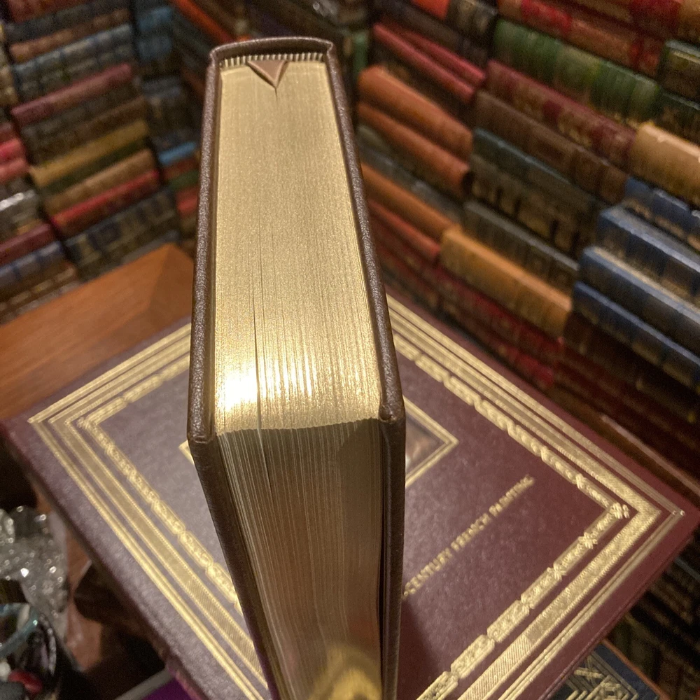 This stunning Franklin Library edition of Flannery O'Connor's complete stories is a treasure for any collector. The rich brown leather binding, gold gilding, and silk end leaves make it feel luxurious, while the Smyth-sewn construction ensures durability. The illustrations by Ben F. Stahl and Jill Bossert's portrait add depth to O'Connor's brilliant Southern Gothic tales. It's a beautifully crafted keepsake that honors one of America's greatest short story writers—perfect for both reading and display. The near-fine condition makes it even more special. A must-have for literature lovers!