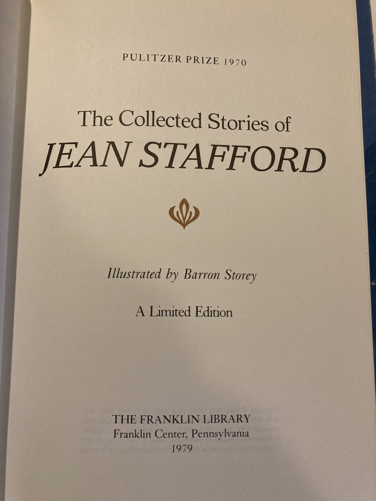 This Franklin Library leather edition of Jean Stafford's collected stories is absolutely stunning! The rich brown leather, gold gilt edges, and beautiful illustrations by Barron Storey make it a true collector's piece. The quality craftsmanship—silk end leaves, satin marker, and acid-free paper—ensures it will last for generations. As a Pulitzer Prize-winning author, Stafford's sharp, evocative prose shines in this limited edition. A must-have for literary enthusiasts and book lovers alike!