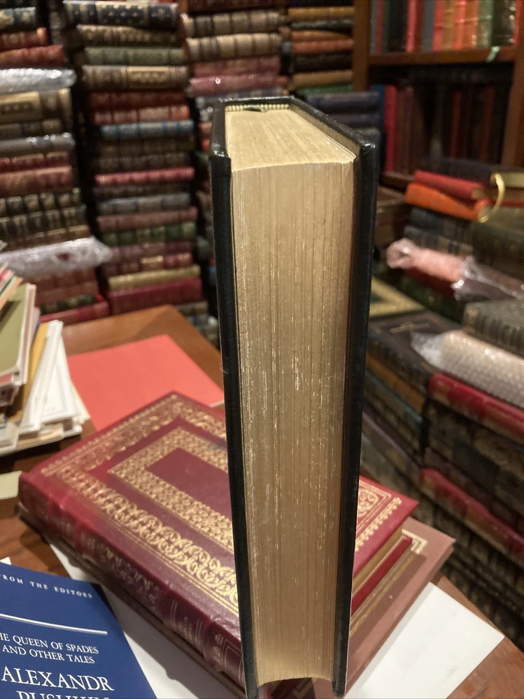 This stunning Franklin Library edition of Montaigne's *Essays* is a treasure for any collector. The hunter green leather binding, gold gilding, and silk end leaves make it feel luxurious, while the Smyth-sewn construction ensures durability. Montaigne's timeless reflections on life, education, and human nature are beautifully presented in this limited edition, complete with elegant illustrations. A true masterpiece for lovers of philosophy and fine books!