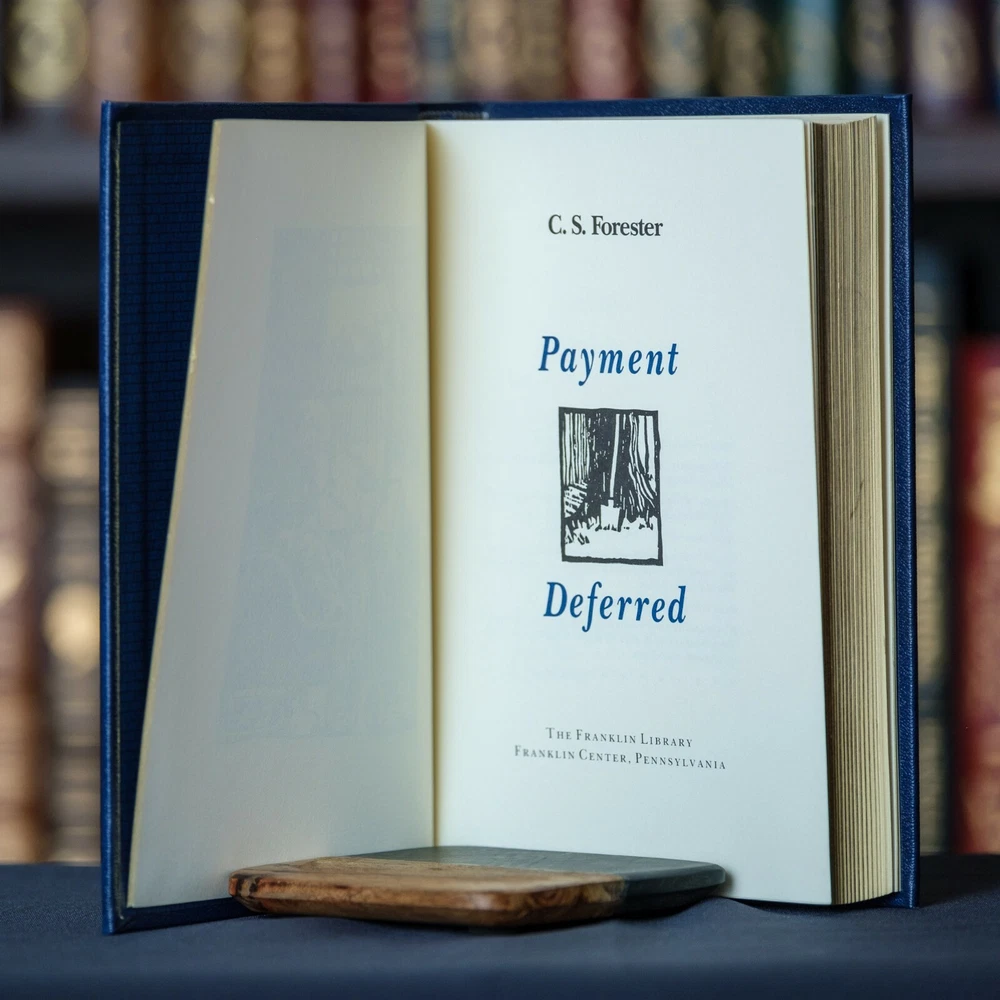 This is a full leather edition of Payment Deferred by C.S. Forester. This book has the silk ribbon bookmark and should not be mistaken for the lower quality leatherette version of this title. This book was published by Franklin Library as a part of The Franklin Library of Mystery Masterpieces. This book is in very fine condition. There are no owner's marks, writing, etc. in the book. The book has a bit of a perfume smell, noticeable if you hold the book a couple of inches from your nose. There are a couple marks/scratches/spots on the gold gilt page edges. See the photos for the actual condition of the book and please message us with any questions about the condition of this title. Thanks for looking! We have multiple listings of Franklin Library and Easton Press books and we can combine shipping on multiple books.