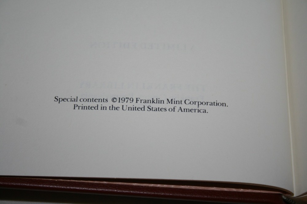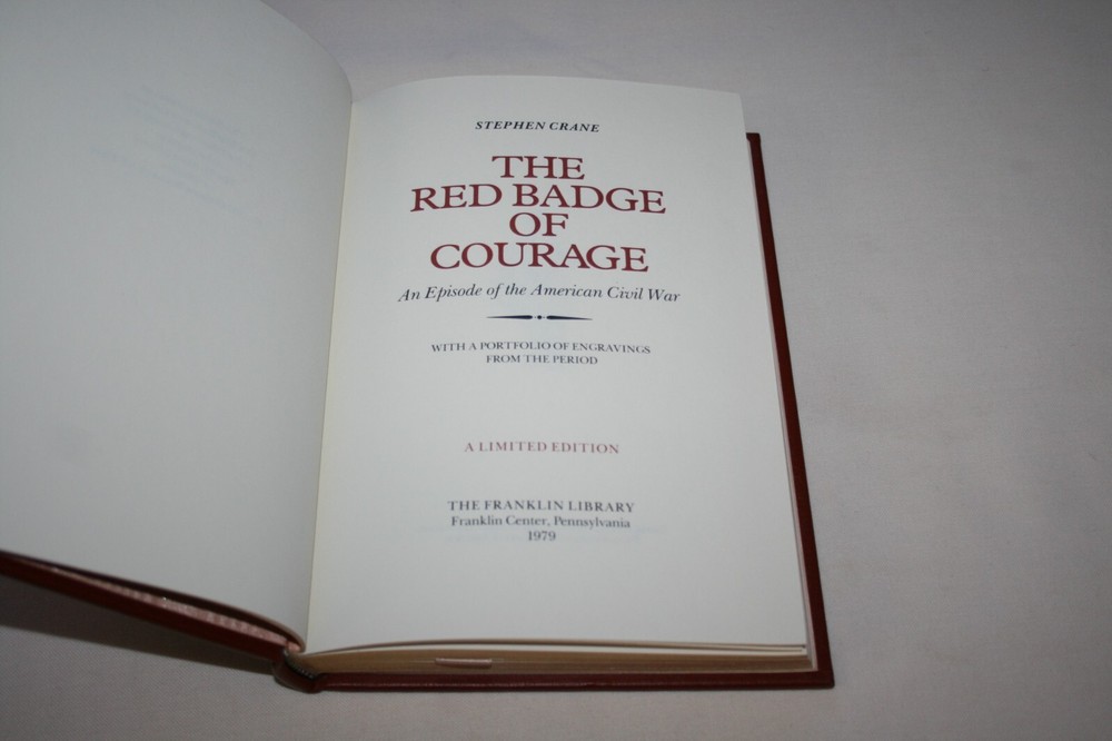 From the Franklin Library 100 Greatest Books of All Time Collection... The Red Badge of Courage An Episode of the American Civil War by Stephen Crane with a portfolio of engravings from the period Copyright 1979 by The Franklin Library A Limited Edition Premium Full Leather Binding This volume contains all of these classic Franklin Library trimmings: Premium Leather Binding Silk Moire Endleaves Distinctive Cover Design Hubbed Spine, Accented in Gold Satin Ribbon Page Marker Gilded Page Edges Long-lasting, High Quality Acid-neutral Paper A very scarce title in any condition, this 1979 First Edition is in Absolute Mint and Unread condition. The front and back covers are in Perfect condition and the gilded page edges show no wear at all! The binding is tight and square without spine lean. There are no markings, bookplates, or other signs of prior ownership in this book. This book is part of the 100 Greatest Books of All Time collection published by the Franklin Library. It would be a beautiful addition to your Franklin Library book collection. Overall, this copy is a grade collector's book. This book is very elusive in this superior condition, as only a limited number of them were ever published, so now is the time to act. Hopefully you can add this book to your collection and enjoy it in the years to come... Please Email Me With Any Questions You Might Have! Shipping Info: Buyer to Pay Shipping and Handling International Bidders Pay Extra Shipping Good luck and happy bidding!