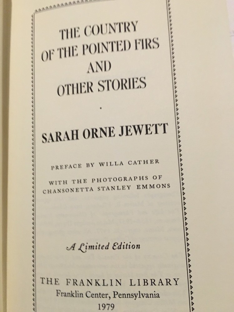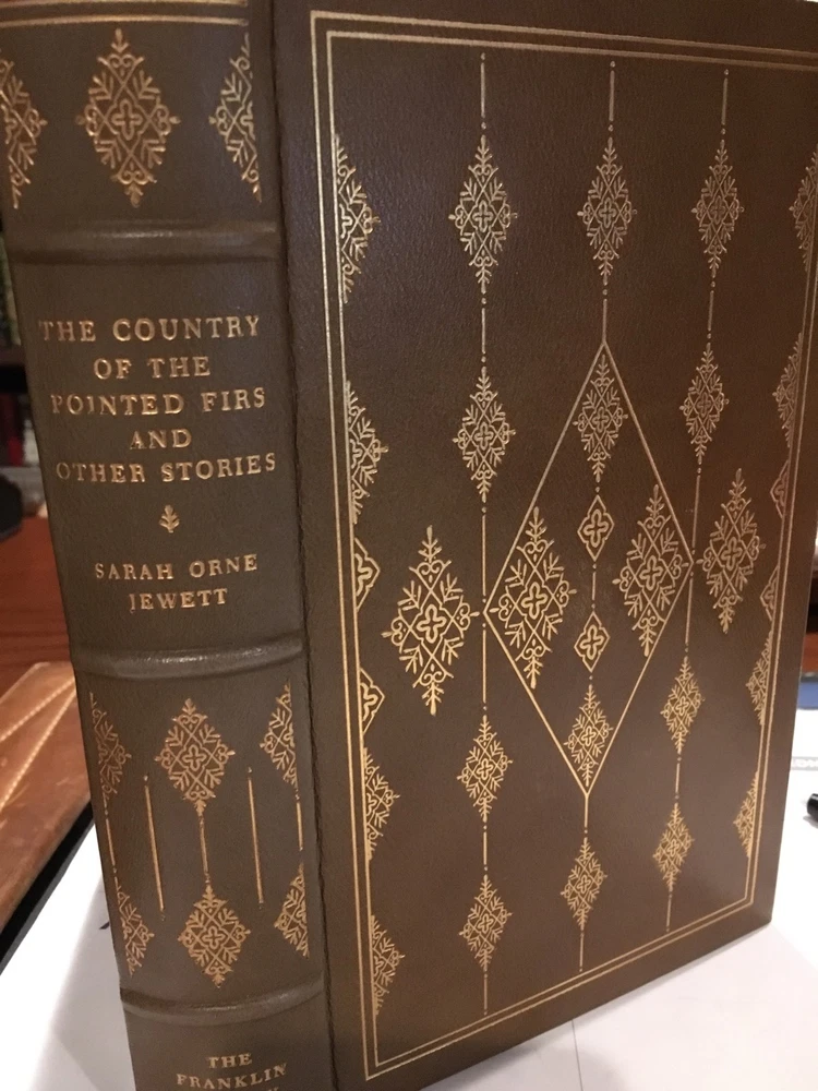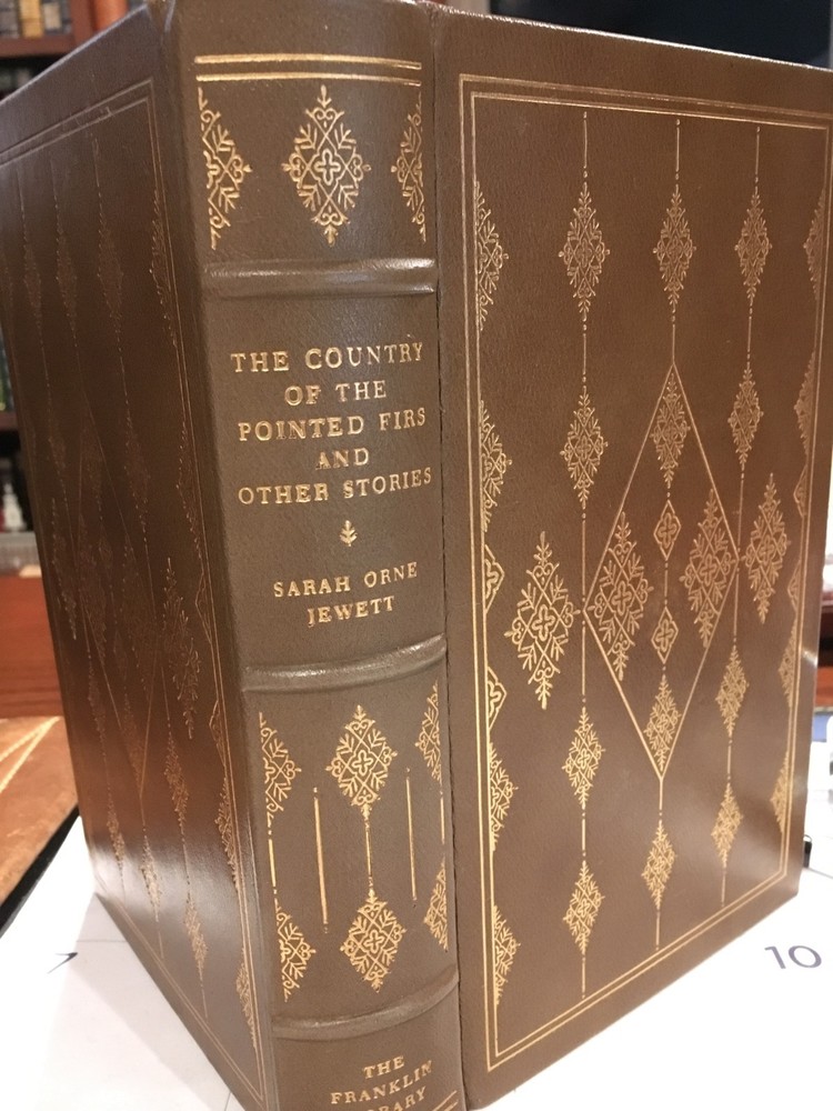 This stunning Franklin Library edition is a treasure for any collector—beautifully bound in rich brown leather with gold gilding, silk end leaves, and a hubbed spine. The timeless stories by Sarah Orne Jewett, with Willa Cather's insightful preface, capture the essence of rural Maine in elegant prose. The added vintage photographs make it even more special. A true masterpiece that feels luxurious in your hands!