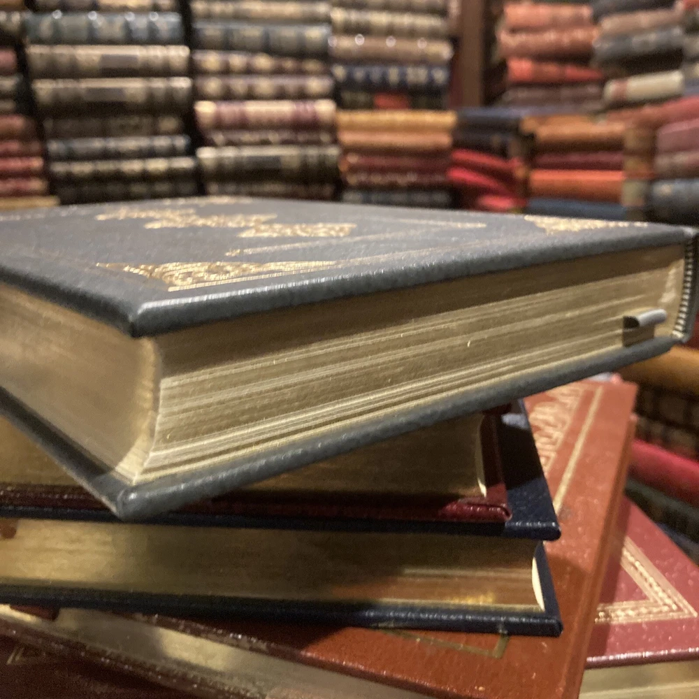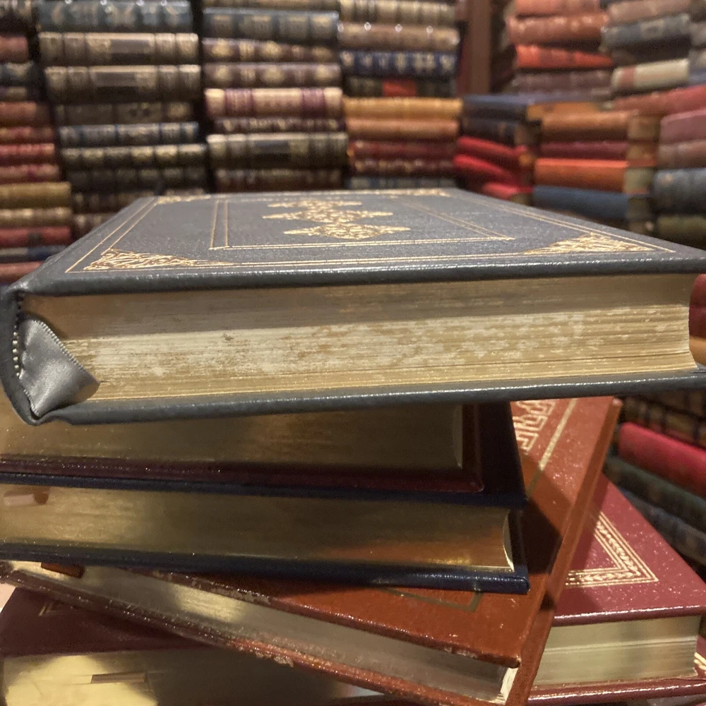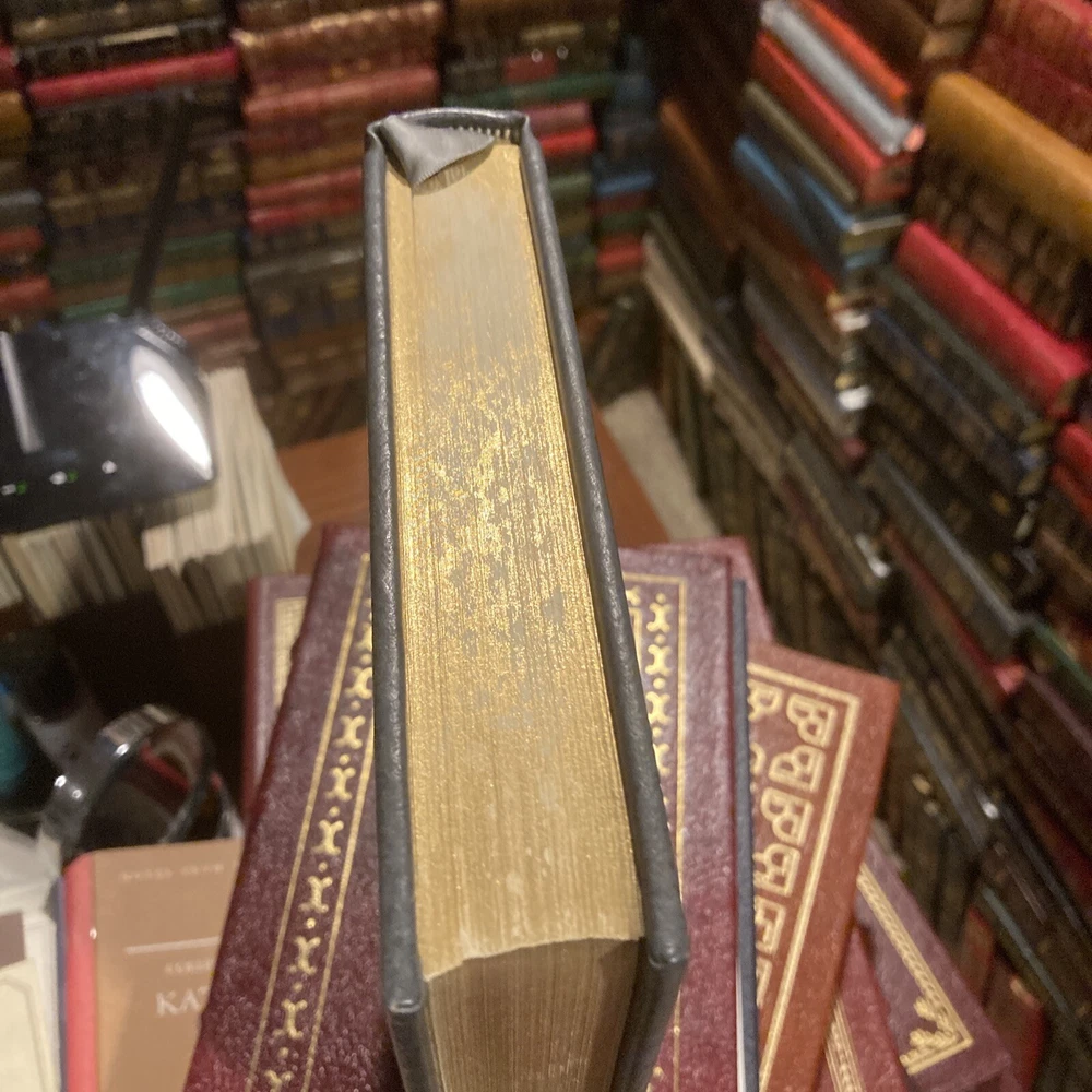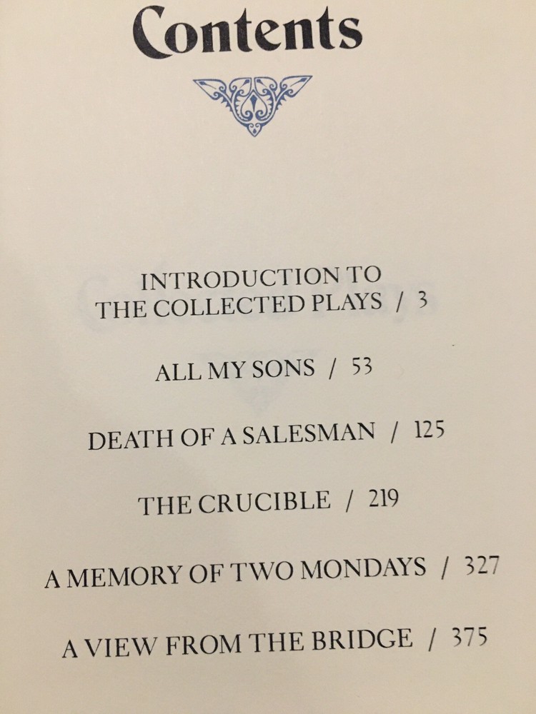 Franklin Library leather edition of Arthur Miller's "Collected Plays," Illustrated by Barron Storey, a limited edition, one of the SIGNED 60 series, PERSONALLY SIGNED by ARTHUR MILLER, published in 1980. Bound in gray/blue leather, the book has gray/blue French moire end leaves, acid-free paper, Symth-sewn binding, a satin book marker, gold gilding on three edges---in Near Fine condition. Asher Miller, who lived from 1915 – 2005, was a prolific American playwright, essayist, and prominent figure in twentieth-century American theatre. This volume includes: "Introduction to the Collected Plays,"---50 pages of Miller's comments and analysis--- and his major dramas: "All My Sons," "Death of a Salesman," "The Crucible," "A View from the Bridge, and "A Memory of Two Mondays." Miller was born in Harlem of Polish Jewish parents. In the Wall Street Crash on 1929, the family lost almost everything. As a teenager, Miller delivered bread every morning before school to help the family. After graduating high school in 1932 he worked at several menial jobs to pay for his college tuition before enrolling at the UNIVERSITY OF MICHIGAN where he began writing plays. Miller retained strong ties to his alma mater throughout the rest of his life. After his graduation in 1938, he joined the Federal Theatre Project, a NEW DEAL agency established to provide jobs in the theater. In 1940, Miller married Mary Grace Slattery and they became parents to two children. Miller was exempted from military service during World War II because of a high-school football injury injury to his left kneecap. 1940 was also the year his first play was produced; "The Man Who Had All the Luck" won the Theatre Guild's National Award. In 1947, Miller's play "All My Sons" was a success on BROADWAY, earning him his first TONY AWARD and his reputation as a playwright was established. In 1948, Miller wrote "Death of a Salesman" and the play premiered on Broadway on February 10, 1949, directed by ELIA KAZAN, and starring Lee J. Cobb as Willy Loman and Mildred Dunnock as Linda. The play was commercially successful and critically acclaimed, winning a numerous award, including the New York Drama Critics' Award and the Pulitzer Prize. The play was performed 742 times. In 1955, Miller's "A View from the Bridge" opened on Broadway. In 1956, Miller married MARILYN MONROE. Miller was subpoenaed by the HUAC. Miller wrote the screenplay "The Misfits" and Marilyn Monroe was given the leading role. In 1961, Miller and Monroe divorced after their five years of marriage. Nineteen months later, Monroe died of a likely drug overdose. 437 pages. I offer Combined shipping.