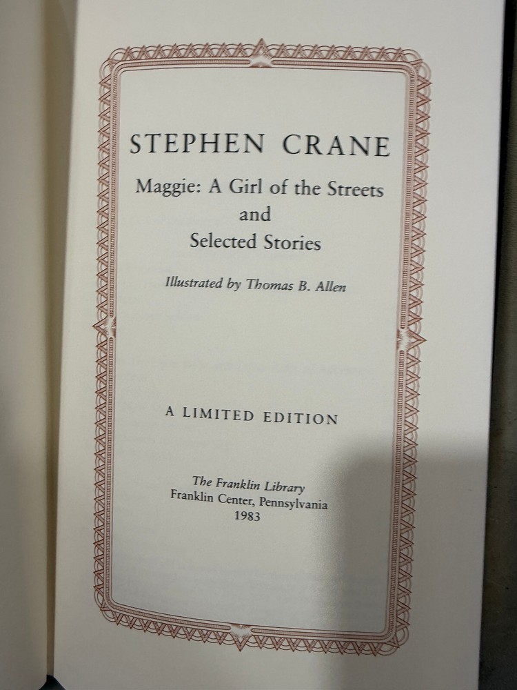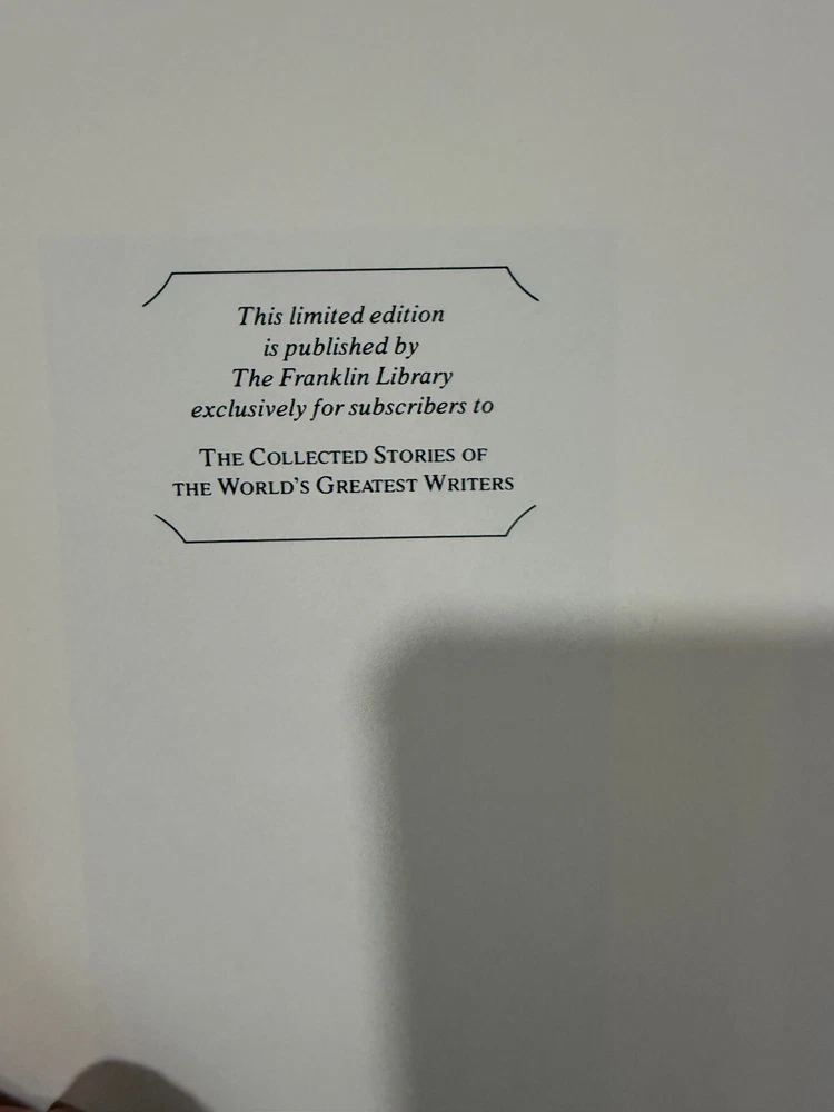 Stephen Crane Franklin Library Collected Stories of the World's Greatest Writers Series Very Good Plus Condition ! New Books get listed daily !!! 100s of Easton Press and Franklin Library books available!! All books get cleaned with a leather cleaner to remove any dust, odor and restore the beauty of leather!! Combined Shipping Discount: USA buyers - every book $1 off International combined shipping: 1 or 2 books - $45 3 or 4 books - $75 5 + books $17 per book 10+ books $13 per book WE SHIP DAILY!! RETURNS: Hassle-Free 30-days return policy and we pay for a return !! Check our Inventory (Link to eBay Store): http://stores.ebay.com/EastonFranklinBooks