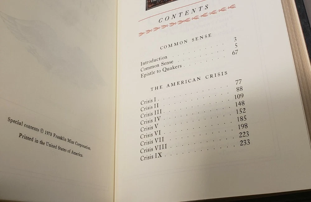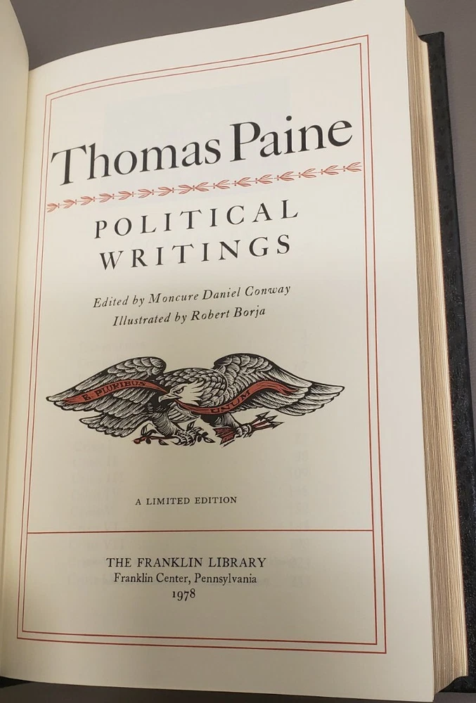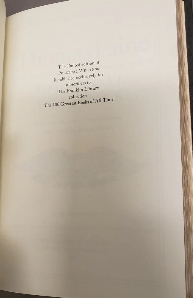 Franklin Library: THOMAS PAINE: COMMON SENSE: AMERICAN CRISES: RIGHTS OF MAN. Political Writings book is in like new condition; no writing in book; no highlights in book; pages good/clean/crisp; book in excellent reading condition; no pages missing; no dog ears; cover has minor shelf wear Sold as is. No returns Please Email with any questions Will mail via USPS media mail