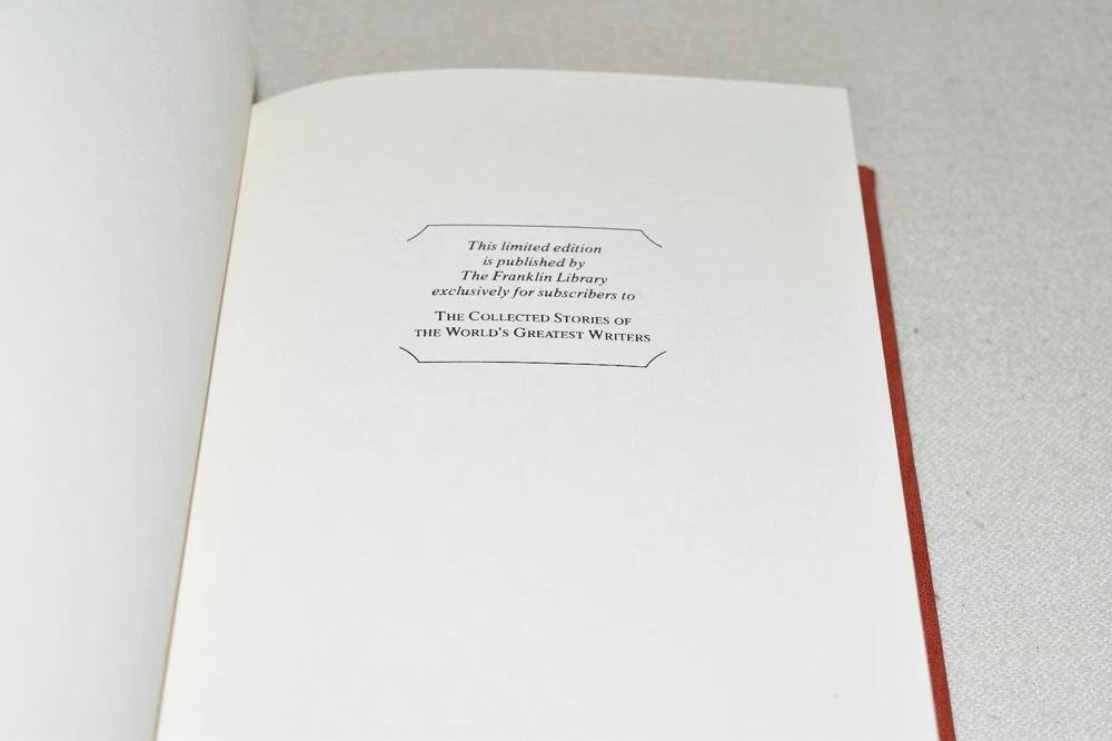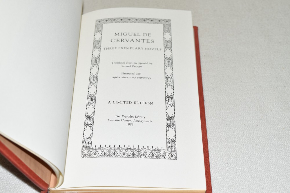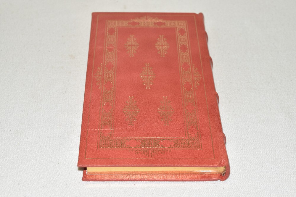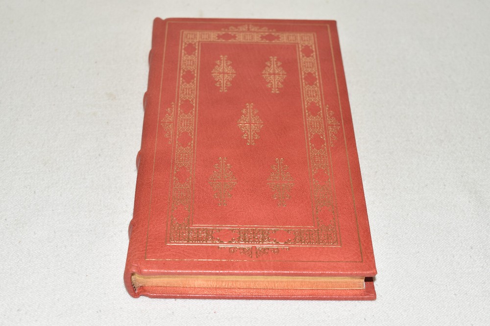From the Franklin Library World's Greatest Writers Collection... Three Exemplary Novels Rinconete and Cortadillo Man of Glass The Colloquy of the Dogs by Miguel de Cervantes Fully Illustrated Copyright 1983 by The Franklin Library Premium Full Leather Binding This volume contains all of these classic Franklin Library trimmings: Premium Leather Binding Silk Moire Endleaves Distinctive Cover Design Hubbed Spine, Accented in Gold Satin Ribbon Page Marker Gilded Page Edges Long-lasting, High Quality Acid-neutral Paper Beautiful Illustrations A very scarce title in any condition, this copy is in Fine condition. The front and back covers are in terrific condition and the gilded page edges show faint wear (see pictures of all sides). There are no markings, bookplates, or other signs of prior ownership in this book. This World's Greatest Writers Edition was published by The Franklin Library and would be a beautiful addition to your Franklin Library book collection. Overall, this copy is a grade collector's book. This book is very elusive in this superior condition, as only a limited number of them were ever published, so now is the time to act. Hopefully you can add this book to your collection and enjoy it in the years to come... Please Email Me With Any Questions You Might Have! Shipping Info: Buyer to Pay Shipping and Handling International Bidders Pay Extra Shipping Seller Not Responsible For Uninsured Items Lost or Damaged in Mail Forms of Payment Accepted: Paypal Good luck and happy bidding! Powered by eBay Turbo Lister The free listing tool. List your items fast and easy and manage your active items.