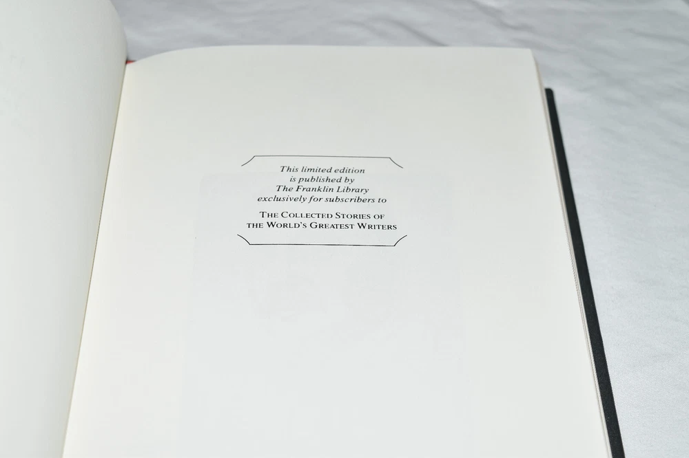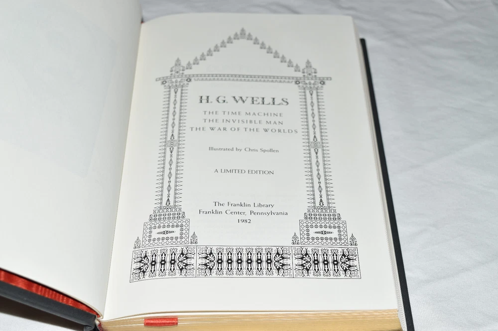 From the Franklin Library World's Greatest Writers Collection... The Time Machine The War of the Worlds The Invisible Man by H. G. Wells Illustrated by Chris Spollen Copyright 1982 by The Franklin Library Premium Full Leather Binding This volume contains all of these classic Franklin Library trimmings: Premium Leather Binding Silk Moire Endleaves Distinctive Cover Design Hubbed Spine, Accented in Gold Satin Ribbon Page Marker Gilded Page Edges Long-lasting, High Quality Acid-neutral Paper Beautiful Illustrations A very scarce title in any condition, this copy is in Near Fine - Fine condition. The front and back covers are in terrific condition and the gilded page edges show faint wear on the top side edge (see pictures of all sides). There are no markings, bookplates, or other signs of prior ownership in this book. This World's Greatest Writers Edition was published by The Franklin Library and would be a beautiful addition to your Franklin Library book collection. Overall, this copy is a grade collector's book. This book is very elusive in this superior condition, as only a limited number of them were ever published, so now is the time to act. Hopefully you can add this book to your collection and enjoy it in the years to come... Please Email Me With Any Questions You Might Have! Shipping Info: Buyer to Pay Shipping and Handling International Bidders Pay Extra Shipping Seller Not Responsible For Uninsured Items Lost or Damaged in Mail Forms of Payment Accepted: Paypal Good luck and happy bidding! Powered by eBay Turbo Lister The free listing tool. List your items fast and easy and manage your active items.