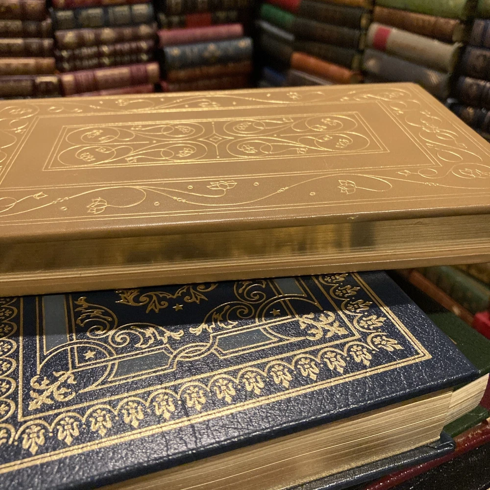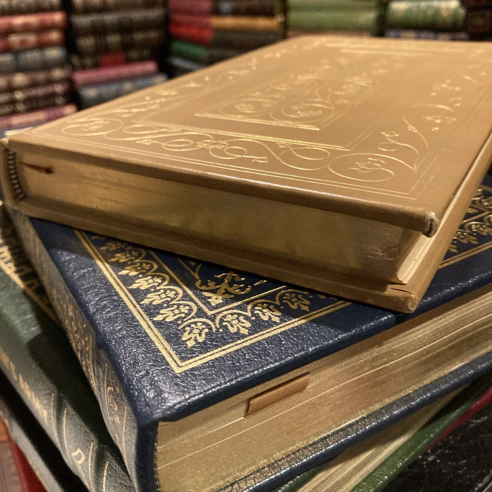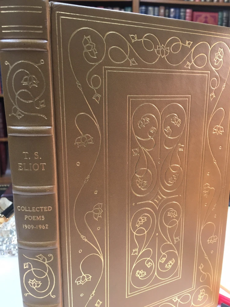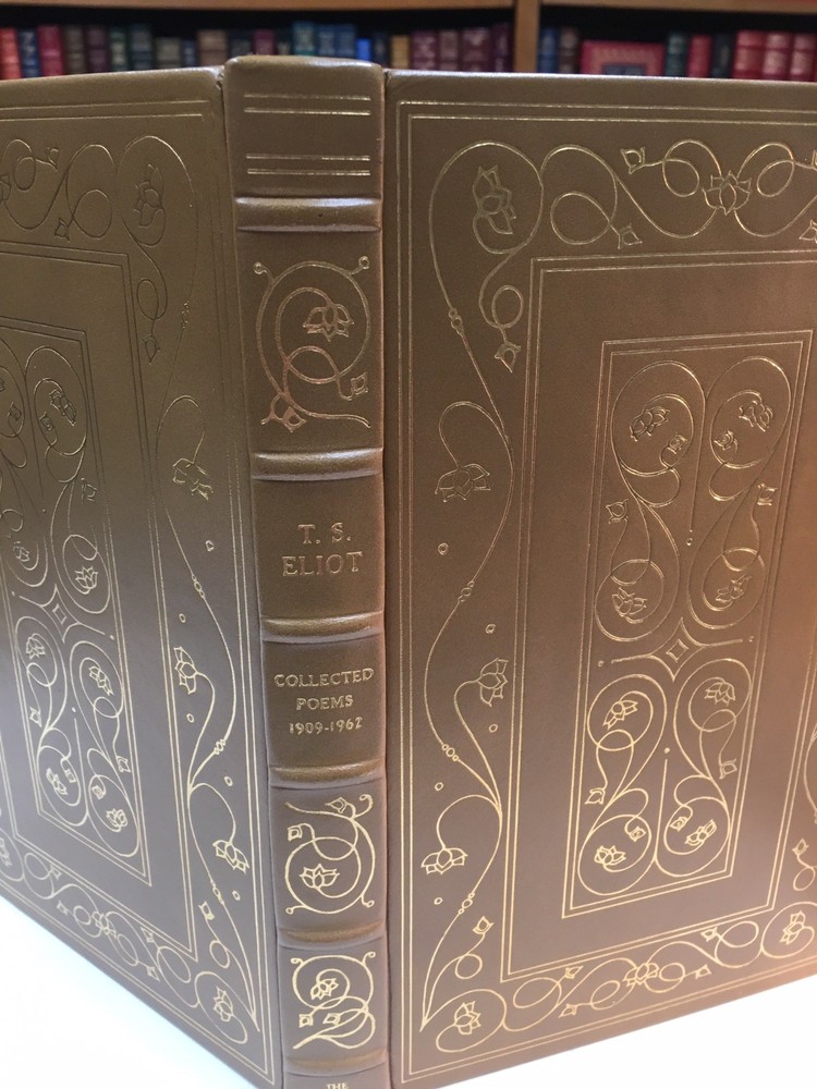 This stunning Franklin Library edition of T.S. Eliot's collected poems is a treasure for any book lover. The rich camel tan leather, gold gilding, and silk end leaves make it feel luxurious, while the Smyth-sewn binding ensures durability. Eliot's timeless poetry shines in this beautifully crafted volume—a must-have for collectors and literature enthusiasts alike. The near-fine condition and limited edition status add to its appeal. Holding this book is like owning a piece of literary history.