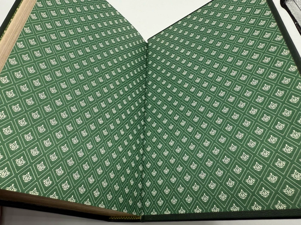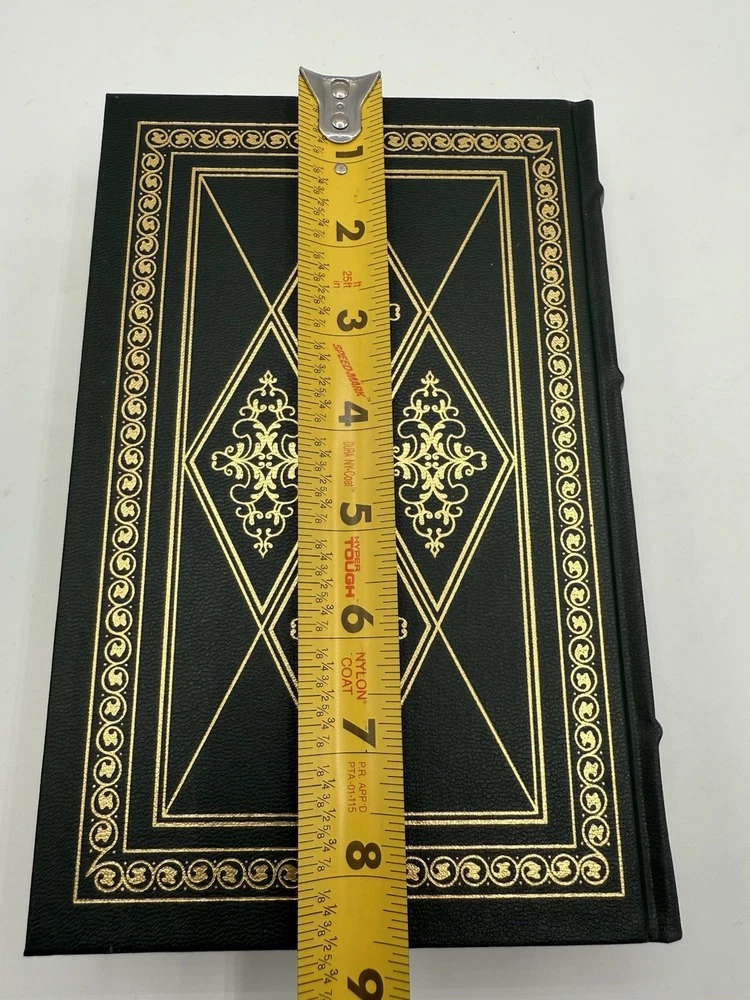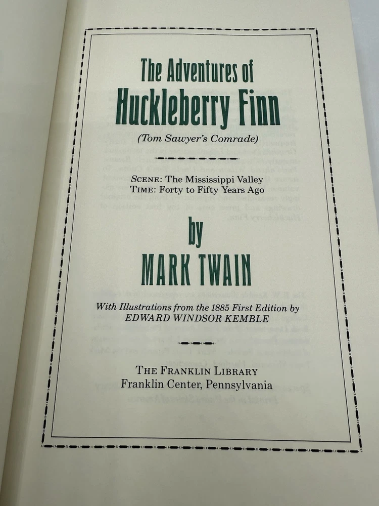 Delve into the classic American literature with the Franklin Library's The Adventures of Huckleberry Finn by Mark Twain. This exquisite leather-bound edition, printed in 1986, is a collector's dream, featuring embossed covers, a hubbed spine, and gold gilt detailing that exudes timeless elegance. The book comes richly illustrated by Tom Allen, adding a visual dimension to the memorable journey along the Mississippi River. Crafted in the United States, this edition preserves the charm of Twain's iconic novel, without signatures or personalization, keeping the focus on the story's wit, adventure, and profound moral lessons. Whether you're a bibliophile or a newcomer to classics, this piece, published by the Franklin Library, is a noteworthy addition to any collection, offering a glimpse into the rich tapestry of American literature.