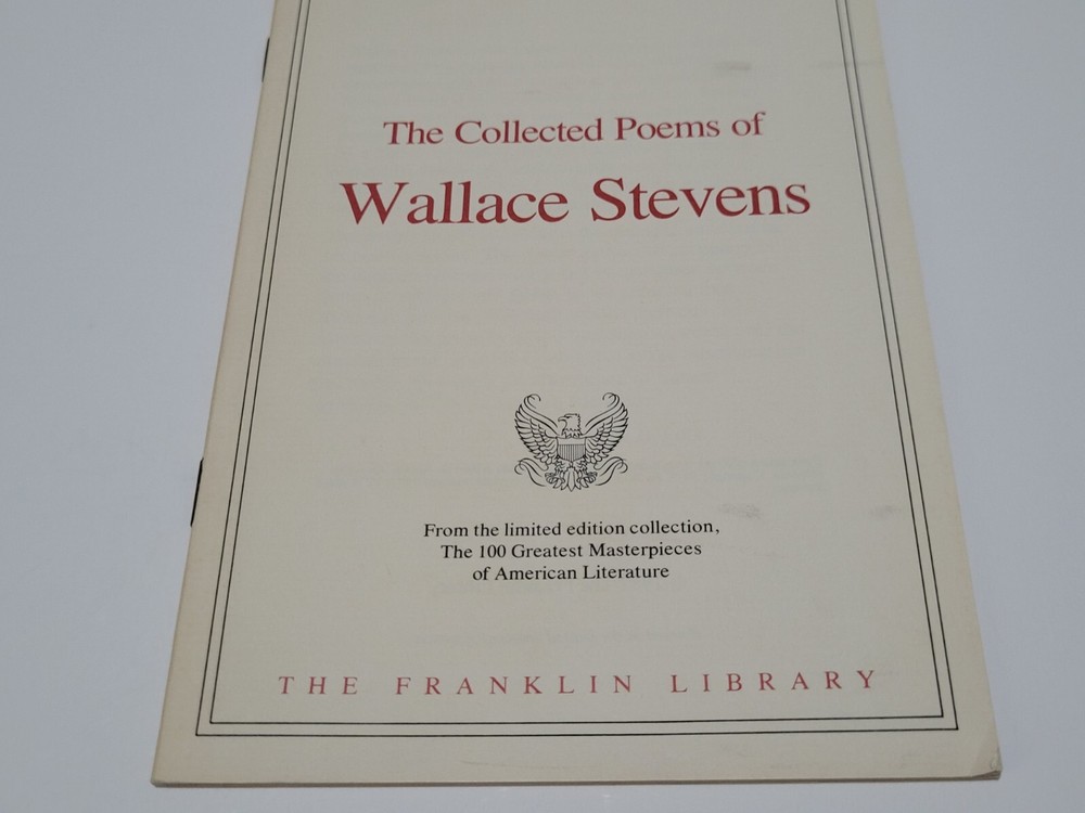 Franklin Library: The Collected Poems of Wallace Stevens 100 Greatest Masterpieces of American Literature Editor’s Notes. Your 1 Stop Vintage & Newer Gift Shop, Something For Anyone On Your Gift List Guaranteed! Books & Collectibles Galore! Selling Multiple Private Collections, Always Willing To Cut Deals & Combine Orders! Condition Is Preowned. Shipped USPS Media Mail, Free! Up For Sale Is A: Franklin Library: The Collected Poems of Wallace Stevens 100 Greatest Masterpieces of American Literature Editor’s Notes. Very Good + Overall Condition For Its Age. May 1982 Written On The Top. Clean Interior. Also Selling The Books From This Collection In My Store, Always Willing To Cut Deals & Combine Orders. Please See All Photos For Exact Specifics. Incredible Editors Notes @ A More Incredible Price Point, Fast & Free Shipping Too! 100% Positive 5 Star Feedback. Shipped USPS Media Mail, Free! Feel Free To Check Out My Store, Vintage & Newer Collectibles Galore! Thank You For Your Time, Have A Wonderful Day & Stay Safe Too. Sincerely, CJ.