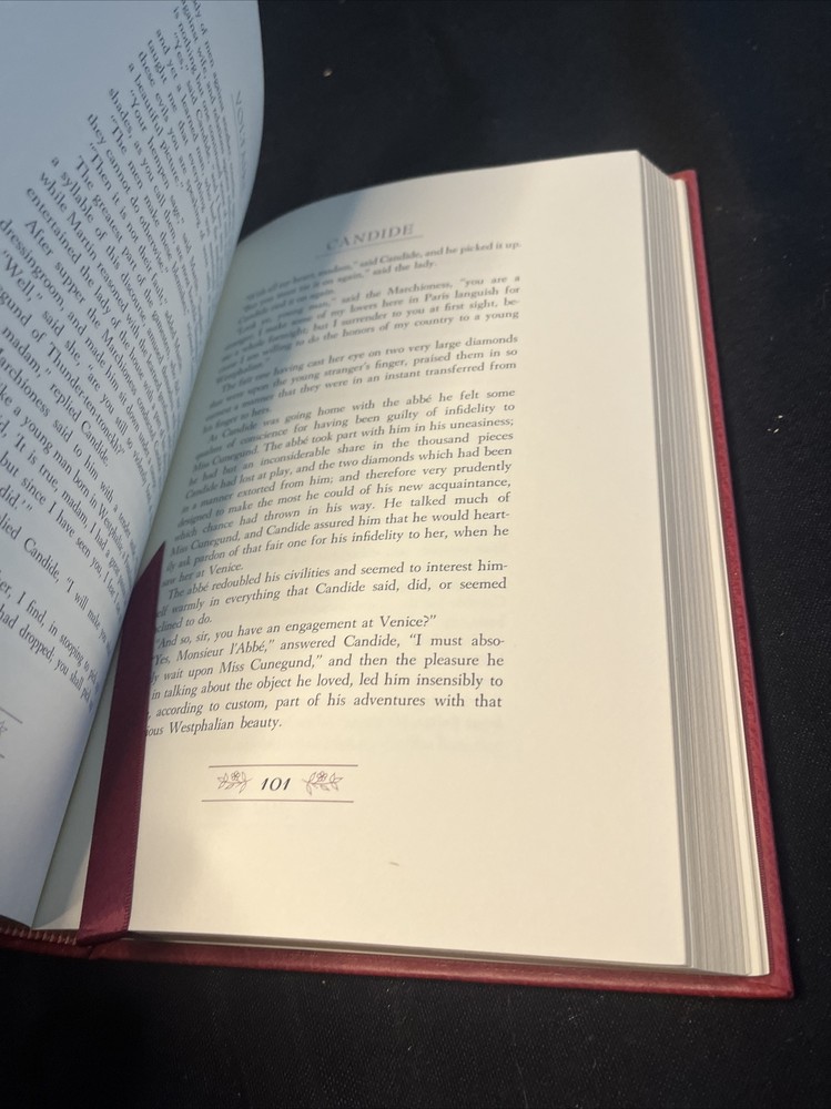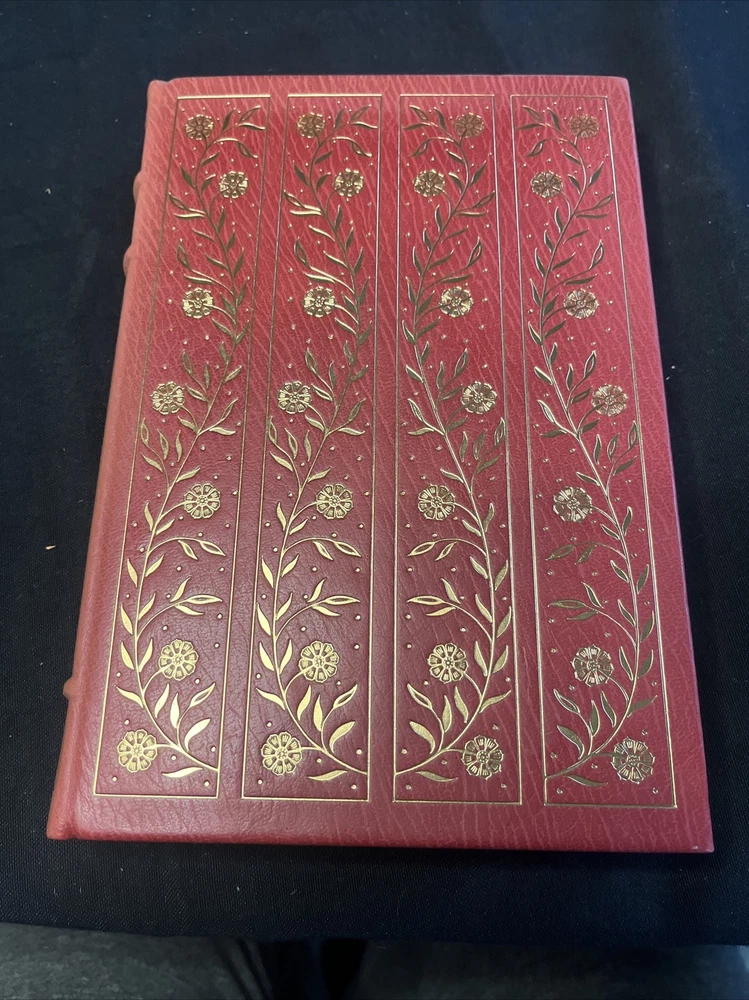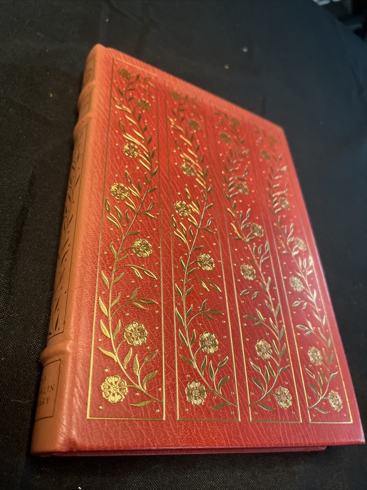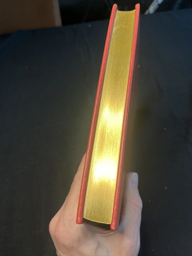 This UNREAD limited edition leather book from The Franklin Mint is in EXCELLENT condition with no markings inside or out and no attached bookplates. The spine's color appears to be somewhat sun-faded; it isn't severe, but if you are inspecting the book, you will notice a slight variance in the color saturation level of the leather between the covers and the spine. Very top edge of the book slightly dusty. The book is otherwise basically perfect. In my estimation, the book sat untouched on a shelf for years with only the spine exposed. It is a very tight and solid copy with a springy spine.