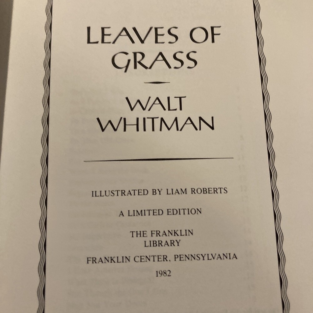 This stunning Franklin Library edition of Whitman’s *Leaves of Grass* is a collector’s dream. The hunter green leather, gold gilding, and Smyth-sewn binding make it feel luxurious, while Liam Roberts’ illustrations bring Whitman’s words to life. The silk end leaves and satin marker add elegance, and despite minor fading, it’s in fantastic shape. A true treasure for any lover of American literature—owning this limited edition feels like holding a piece of history. Whitman’s timeless poetry shines even brighter in this beautifully crafted volume.