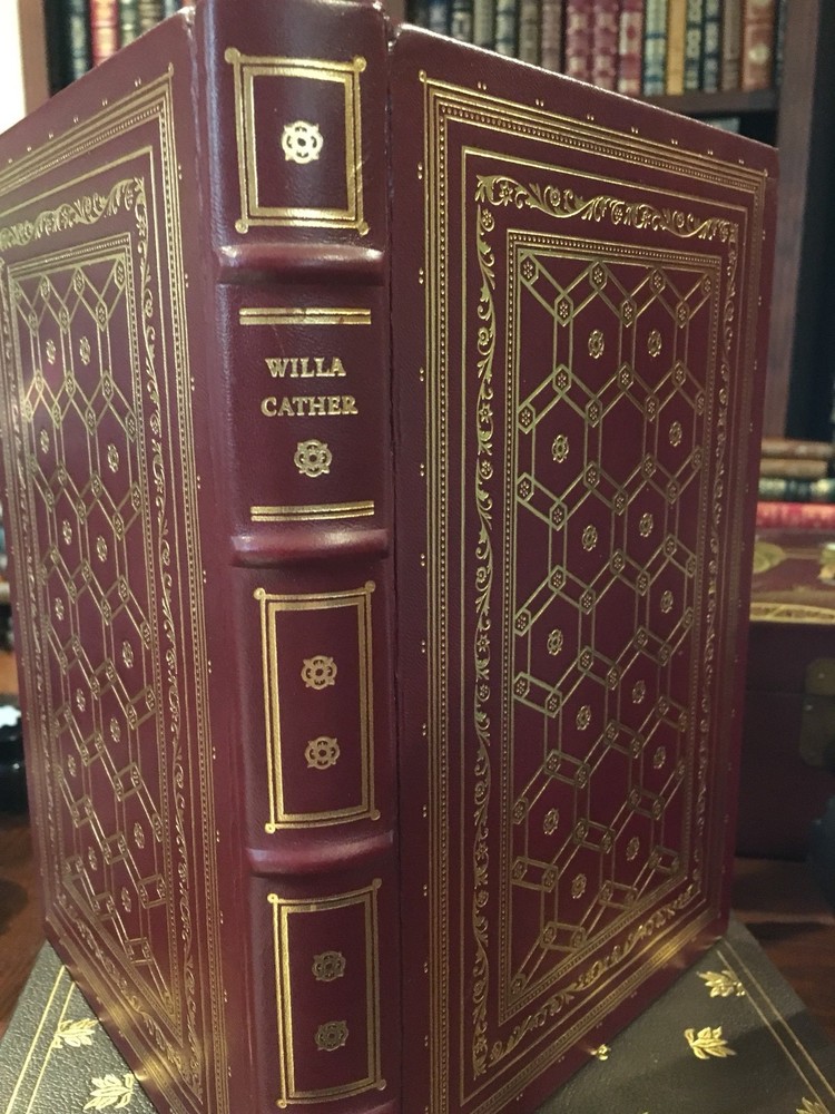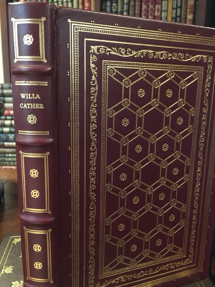 This stunning Franklin Library edition of Willa Cather's work is a collector's dream! The rich burgundy leather, gold trim, and Smyth-sewn binding ensure durability, while the moire silk pages and satin bookmark add elegance. The frontispiece portrait and crisp acid-free paper make reading a pleasure. A beautifully crafted tribute to Cather’s timeless stories—definitely worth the shelf space!