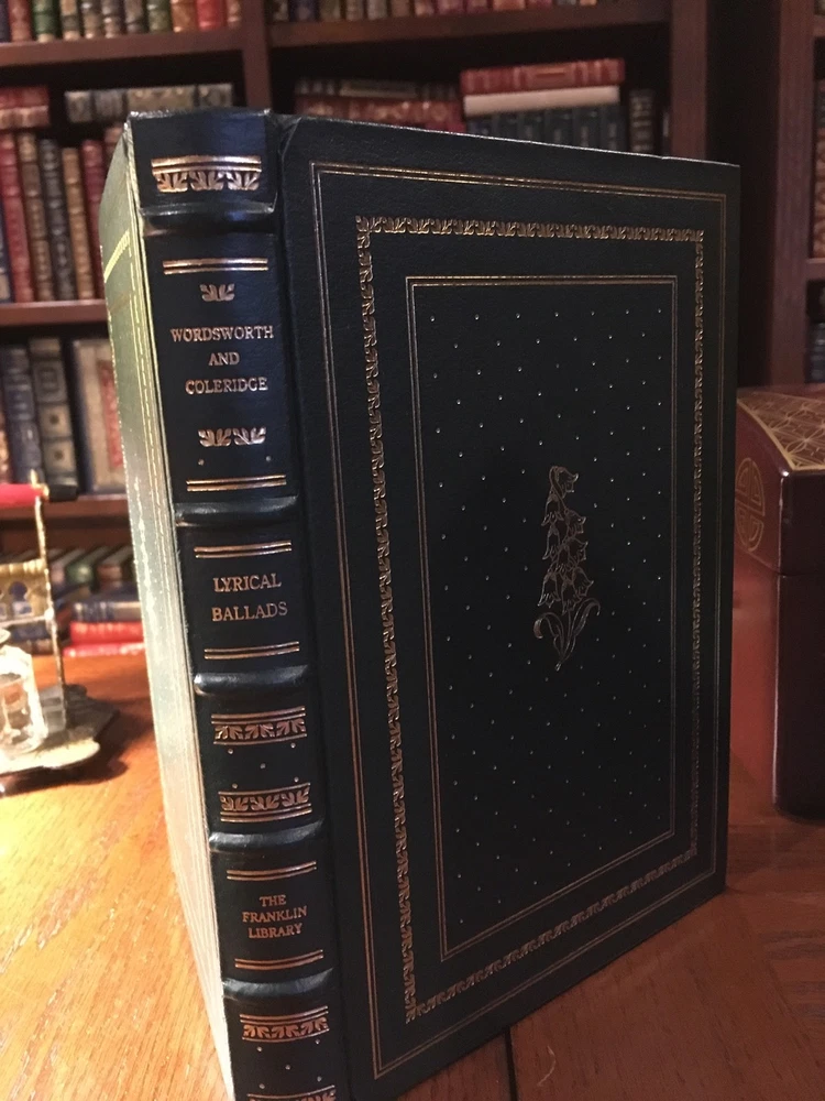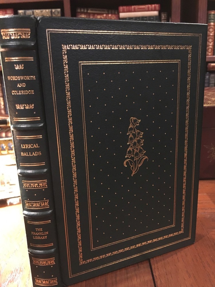 Franklin Library leather edition of William Wordsworth and Samuel Taylor Coleridge's "Lyrical Ballads," a Limited edition, Illustrated by Ronald Keller, the text of the 1798 edition with the additional poems of 1800, one of the 100 GREATEST BOOKS OF ALL TIME series, published in 1982. Bound in a hunter green leather, the book has matching moire silk end leaves, a satin book marker, Symth-sewn binding, acid-free paper, hubbed spine, gold gilding on three edges---in near FINE condition. William Wordsworth, who lived from 1770 – 1850, was a major English Romantic poet who helped to launch the Romantic Age in English literature with the publication "Lyrical Ballads." This volume includes his most famous poems. Wordsworth was Britain's POET LAUREATE from 1843 until his death in 1850. Samuel Taylor Coleridge, who lived from 1772-1834, was educated at Jesus College, Cambridge. Wordsworth's poems: "I Wandered Lonely As a Cloud," "Lines Written a Few Miles Above Tintern Abbey," "The Mad Mother," "We Are Seven," "Poor Susan," "A Poet's Epitaph," "Rural Architecture," "The Childless Father," "Ruth," and Others. This volume also includes Coleridge's "Goody Blake and Harry Gill," "Lines Written in Early Spring," "The Thorn," "The Last of the Flock," and "The Rime of the Ancient Mariner." 274 pages. I offer Combined shipping.