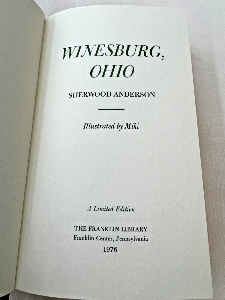 From the Franklin Library 100 Greatest Masterpieces of American Literature... Winesburg, Ohio by Sherwood Anderson Illustrated by Miki Copyright 1976 by The Franklin Library Bound in Premium Full Leather This volume contains all of these classic Franklin Library trimmings: Premium Leather Binding Silk-moire Endleaves Distinctive Cover Design Hubbed Spine, Accented in Gold Satin Ribbon Page Marker Gilded Page Edges Long-lasting, High Quality Acid-neutral Paper Beautiful Illustrations DESCRIPTION A very scarce title in any condition, this 1976 First Edition is in Absolute Mint and Unread condition. The front and back covers are in Perfect condition and the gilded page edges show no wear at all! There are no markings, bookplates, or other signs of prior ownership in this book. This Edition is part of the 100 Greatest Masterpieces of American Literature published by The Franklin Library and would be a beautiful addition to your Franklin Library book collection. Overall, this copy is a grade collector's book. This book is very elusive in this superior condition, as only a limited number of them were ever published, so now is the time to act. Hopefully you can add this book to your collection and enjoy it in the years to come... SHIPPING POLICY We take great care packaging every item to ensure safe shipment to you. Items are packaged using plenty of bubble wrap and packaged securely in a sturdy box. Our secure shipping methods have resulted in zero damaged items in over 15 years! Items are shipped out within 1 - 3 days of payment being received. RETURN & REFUND POLICY We accept refunds within 30 days of purchase. If you are not 100% satisfied with your purchase, please contact us about a refund, or initiate a refund through eBay. CONTACT US We are committed to providing our customers with the best possible on-line shopping experience. This includes a commitment to excellent customer service, before you purchase as well as after your order has been delivered. Please feel free to submit any questions or inquiries regarding this item or your order by sending us a message through the eBay messaging system. We will typically respond within 24 hours of receiving your message.