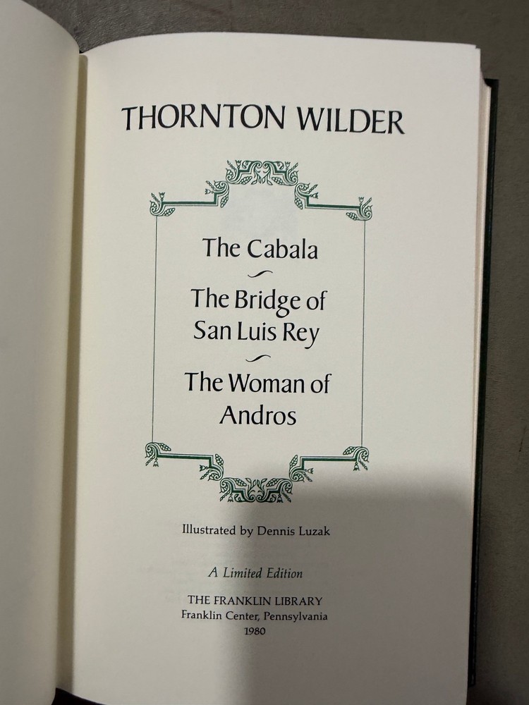 Wilder, Thornton - The Cabala, The Bridge of San Luis Rey, The Woman of Andros Franklin Library Collected Stories of the World's Greatest Writers Series Very Good Plus Condition ! New Books get listed daily !!! 100s of Easton Press and Franklin Library books available!! All books get cleaned with a leather cleaner to remove any dust, odor and restore the beauty of leather!! Combined Shipping Discount: USA buyers - every book $1 off International combined shipping: 1 or 2 books - $45 3 or 4 books - $75 5 + books $17 per book 10+ books $13 per book WE SHIP DAILY!! RETURNS: Hassle-Free 30-days return policy and we pay for a return !! Check our Inventory (Link to eBay Store): http://stores.ebay.com/EastonFranklinBooks