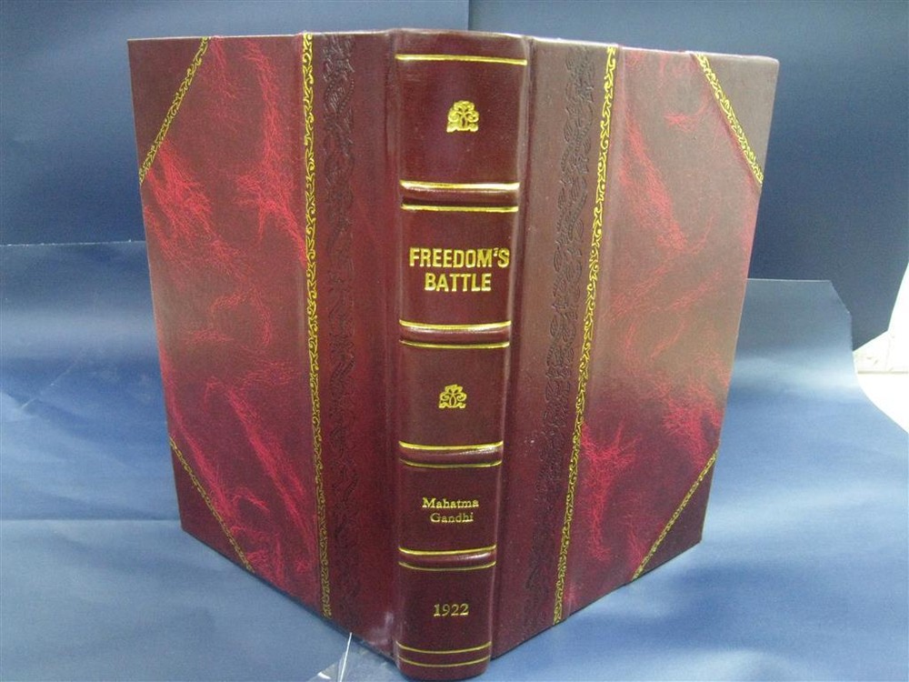 About the Book: Complete Title: Freedom'S Battle Being A Comprehensive Collection Of Writings And Speeches On The Present Situation 1922 [Leather Bound] Author: Mahatma Gandhi Edition: Reprinted by Gyan Books in 2024 with the help of original edition published long back [1922] . Language: English No. Of Pages: 359 Binding: HALF LEATHER binding features a leather spine and corners with the remaining cover in Raxine or Marble Paper. CHOOSE ANY LEATHER COLOR OF YOUR CHOICE WITHOUT ANY EXTRA CHARGES JUST CLICK ON IMAGES FOR OPTIONAL COLORS AND INFORM US YOUR CHOICE THROUGH MAIL WITH COLOR CODE. Customization Options Available Upon Request We provide 'Extra customization*' on request with additional charges. Please note that customization charges are applied in addition to the listed item (Book) price. Customization Extra Charges Sample Image FULL LEATHER BOUND WITH GILDED EDGES (ANY COLOR) USD 35 MULTI-COLOR LABELS (Spine) USD 12 PERSONALIZED IMAGE EMBOSSING ON THE FRONT COVER USD 40 FOLIO EDITION (12x18.5 inches) BIGGER SIZE Six times of the given price Points to note before booking order: SPECIAL DISCOUNT FOR BULK ORDERS PLEASE CONTACT US. UNIQUE LEATHER-BOUND Edition on Spine and Corners along with Golden Leaf Printing on Round Spine. This book is: Printed in Black & White (If a color edition is available you may request it by mail for a nominal charge.) Sewed binding for longer life Printed on high quality Natural Shade Acid Free Paper Professionally processed without changing its content Genuine Leather is being used for Binding Handcrafted Golden Leaf Printing. Round Spine Handmade Marble paper use for end paper Raise bands Bookmark Ribbon As these are old books each page is processed manually to make them readable. But in case some pages are blur or missing or have black spots the same are re-printed as it is to keep the authenticity of the book. In case of multi volume sets please note that the above listing is for a single volume only. (To order multiple volumes please contact us separately). We request you to understand that these leather-bound books are work of art and hence require time to go through different process to be the masterpieces that they are. We usually take 20 business days as handling time to dispatch shipment. We consider special request for a special occasion. Craftsman based in India prepared this book and shipped from different stock locations around the Globe. PRODUCT DISCLAIMER: Please be aware that because leather is a natural material slight discoloration or change in texture may be visible. ABOUT US GYAN BOOKS INTRODUCING A REMARKABLE LEATHER-BOUND EDITION, METICULOUSLY CRAFTED BY THE ESTEEMED INSTITUTION: RARE BIBLIO A UNIQUE LEATHER-BOUND BOOK FOR ELITE READERS/COLLECTORS OF OLD RARE AND BESTSELLING BOOKS. An ORIGINAL LEATHER is being used for Binding this Book on SPINE AND CORNERS along with GOLDEN LEAF PRINTING {Half Leather}. We deal into reprinting of the masterpieces crafted by authors around the world. We are proud to say that we have a collection of over 25 million books and our collection includes books that are as old as 200 years and hence are considered as RARE BOOKS. We are pioneer in this field having experience of 40 years. We also undertake printing and Leather Binding jobs of other books. Thesis printing and Leather Binding is one of our important services. Many publishers and authors approach us for their books to bind in our unique leather binding format for their special customers. Our craftsmen are active in this job since generations. Restoration of old books is our expertise. We are known by our Customization options. We have many leather color options in our bucket. The whole process is done manually so that it gives you the same feeling of old book.