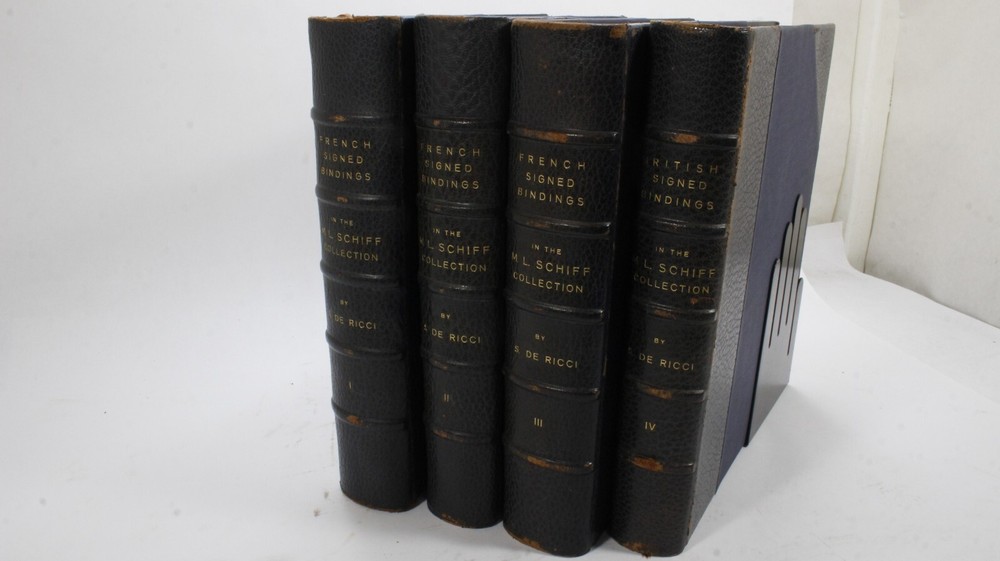 French Signed Bindings in the Mortimer L. Schiff Collection by Seymour De Ricci - 4 Volumes Description 1935, France: Lecram-Servant, Paris, Three-quarter Leather bound. 4 Volume set, Illustrated, Text in English. Deckled edges (All volumes), Spine splitting through text (Volumes 1, 2, 3), Top edge gilded (All Volumes), All cover edges and corners are worn. Offered by the Antiquarian, Rare, and Collectible department of Better World Books. Your purchase benefits global literacy programs. 100% satisfaction guaranteed. Payment Payment is accepted via PayPal, Google Pay, and Credit Card ( Mastercard, Visa, Discover, and American Express ). Payment is expected to be completed within four (4) business day (Mon-Fri). Items not paid for within four (4) business days will result in order cancellation and product being relisted at original listing price. Shipping Domestic Shipping: Standard Shipping has a 1-2 business day handling time. Once orders are shipped they will arrive in 2-8 business days with tracking included. International Shipping: International Shipping has a 1-2 business day handling time. Once orders are shipped they will arrive in 10-21 business days. Terms of Sale We offer a 100% satisfaction guarantee on all products. Should you be unhappy with your order, or would like to arrange a return, please contact us within 30 calendar days of receipt. About Us Better World Books is a for-profit, socially conscious business and a global online bookseller that collects and sells new and used books online, matching each purchase with a book donation. Each sale generates funds for literacy and education initiatives in the U.S., the UK, and around the world. Since its launch in 2003, Better World Books has raised $32 million for libraries and literacy, donated over 29 million books, reused or recycled more than 373 million books, and sold over 100 million books. Contact Us Our team is always happy to help and is available Monday through Friday (7:00 AM - 2:30 PM ET). Send us a message through eBay should you have any questions about listings, orders, or offers.