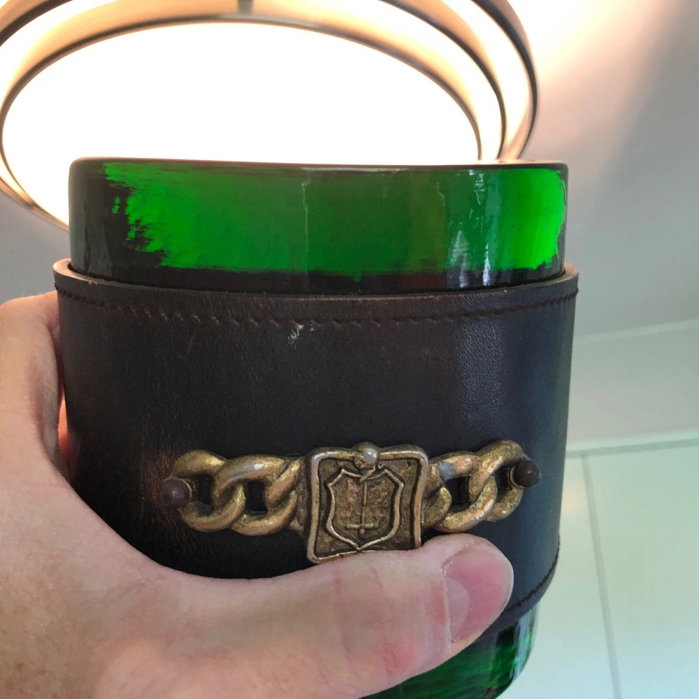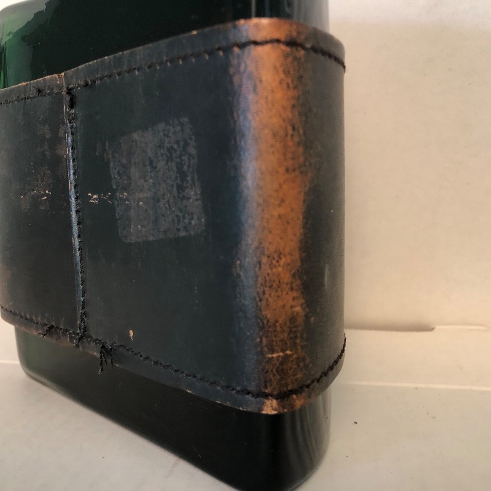 Great single bookend measures roughly 5 tall, 5 across the top back and 2 1/2 deep. Looks just like Blenko to me, but has original sticker made in Italy and leather bound as shown. If you have any que...