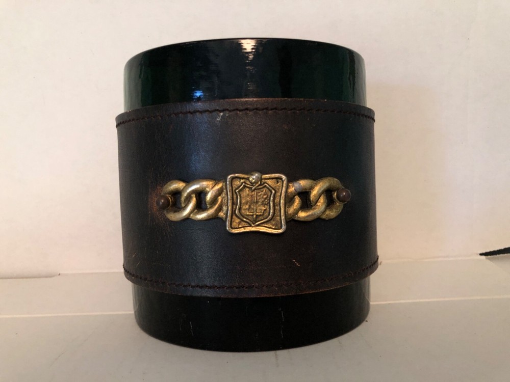 Great single bookend measures roughly 5 tall, 5 across the top back and 2 1/2 deep. Looks just like Blenko to me, but has original sticker made in Italy and leather bound as shown. If you have any questions, please let me know. Thanks