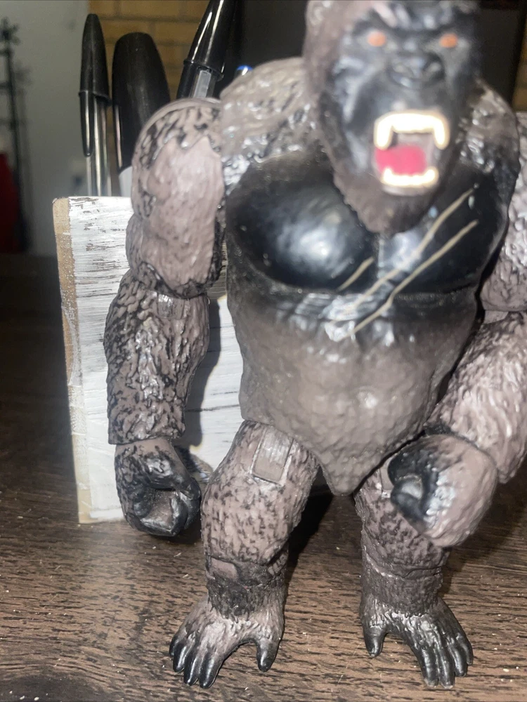 Embark on an epic adventure with the King Kong Battle Damage action figure from the Monsterverse. Inspired by the blockbuster movie "Godzilla vs. Kong," this highly detailed Playmates Toys creation is a must-have for fans and collectors alike. Crafted with durable plastic and designed with intricate details true to the character, this custom figure captures the raw strength and fierce demeanor of the iconic giant ape. The set comes complete with King Kong's signature axe, enhancing the display or play experience. It's not just for play, though; this figure also includes a battery-powered feature that brings the character to life with dynamic lighting and sounds, creating an immersive experience for viewers of all ages. Unleash the excitement of the Monsterverse in your collection with this striking King Kong action figure.