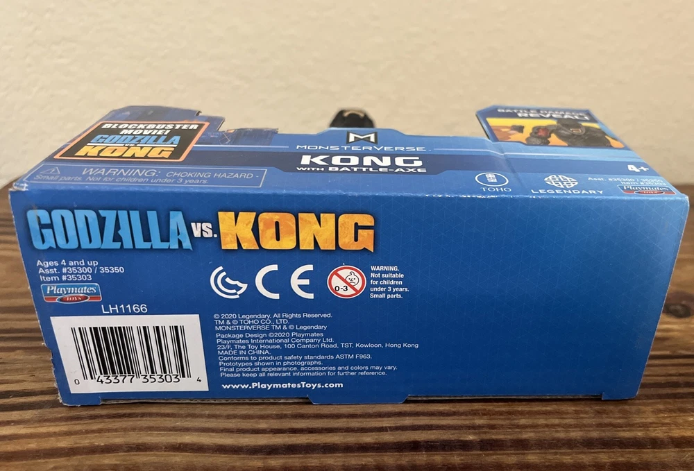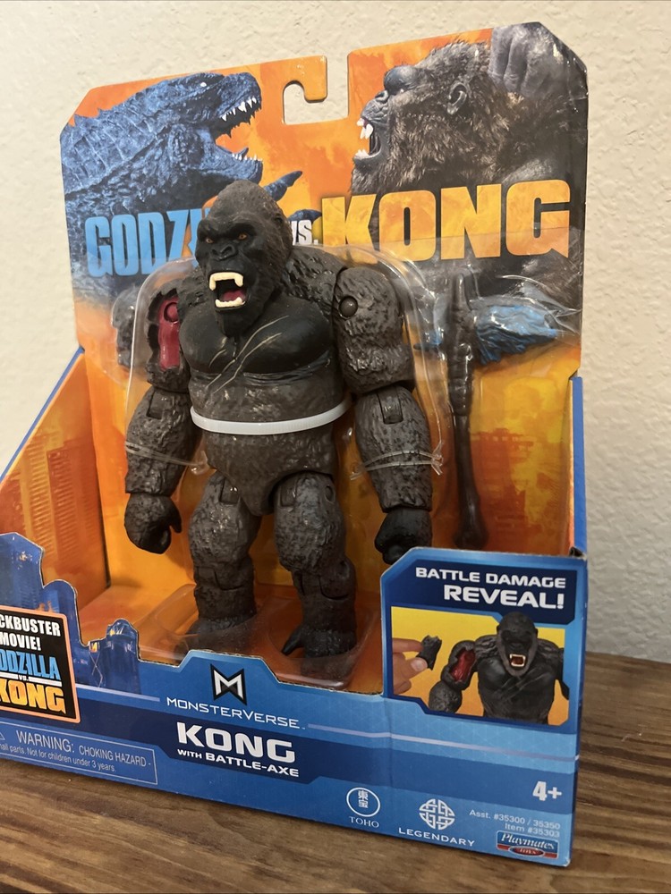 The product is a Playmates Toys action figure of King Kong from the movie Godzilla vs. Kong in the Monsterverse series. This custom figure comes with battle damage and is made of plastic, suitable for children aged 3 and up. The unassembled kit/set features a battery-powered design, making playtime more exciting for fans of the TV, movie, and video game theme. King Kong is portrayed in a 1:500 scale, adding to the realism of this action figure for collectors and enthusiasts.