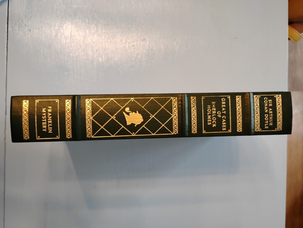 Immerse yourself in the world of deduction with "GREAT CASES of SHERLOCK HOLMES" from the Franklin Mystery Masterpieces collection. Published in 1987, this luxurious leather-bound edition is a treasure for both bibliophiles and fans of Sir Arthur Conan Doyle's iconic character. Rich in detail and illustrated to enhance the reading experience, this collector's item showcases the mastery of Holmes across a series of riveting mystery and thriller tales. Crafted in the United States with an attention to quality, this volume is a testament to the enduring appeal of literature and fiction. The book is presented in English and is a proud addition to any library with an affinity for classic European intrigue. With its roots in the Sherlock Holmes character family, this piece is not only a reading delight but also a cherished keepsake for those who appreciate the art of the mystery story.