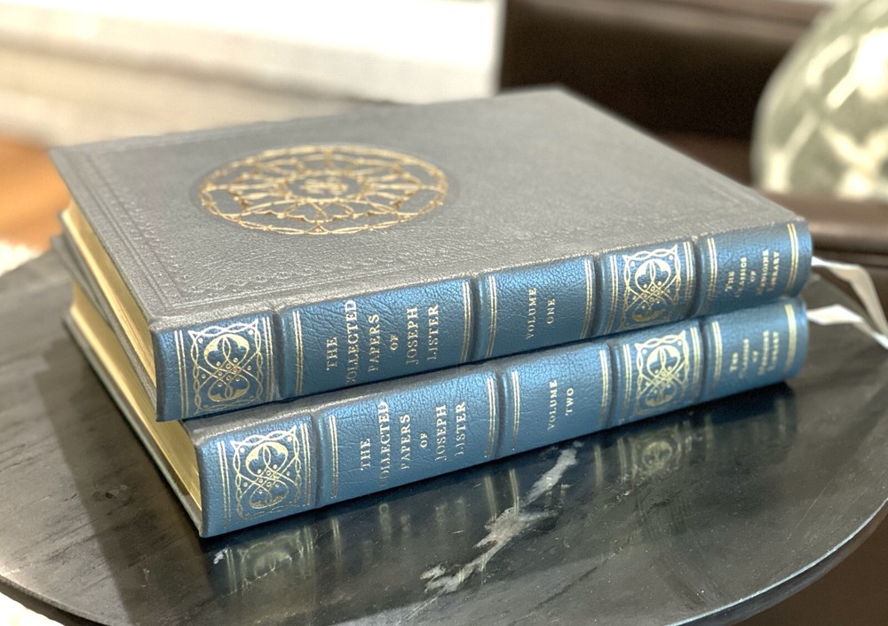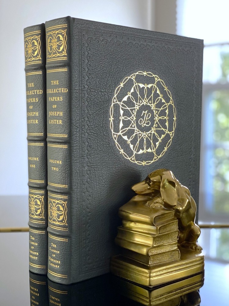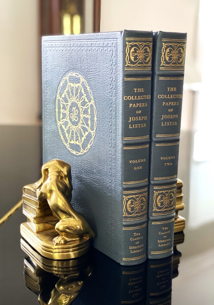THE COLLECTED PAPERS of JOSEPH BARON LISTER (Medical Doctor, Surgeon) This is a 2-volume facsimile of the original 1909 edition published by Clarendon Press, Oxford Complete in 2 gift-quality leather volumes. Published 1979 by the Classics of Medicine Library, a division of Gryphon Editions Ltd. Each fully leather-bound volume measures 9 1/4 x 11 1/2" and features: - 22k gilt text block edges - Gilt titles and decorations on spine - Gilt medallion on front board - 4 raised bands on spine - Gray silk moire end sheets - Sewn-in ribbon page marker Both volumes are in near fine condition with no discernable wear to the leather and only a couple light marks to the gilt at the bottom of volume 1. This high-quality set would make a thoughtful gift for the doctor or aspiring doctor in your life. All Orders Are Carefully Wrapped and Promptly Shipped Reasonable Offers Welcome. 100% Feedback.