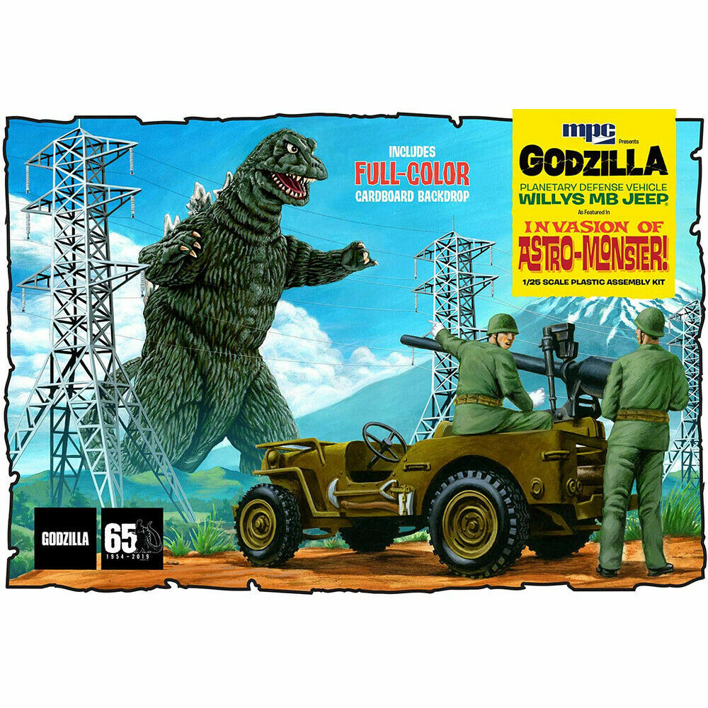 MPC Godzilla Army Jeep 1:25 Scale Model Kit Shipping & Handling Our standard shipping service is usually fast, orders will be processed the next business day after your payment is received. Transit times can vary from 2-5 business days depending on your location. Expedited shipping usually takes 2 to 3 business days. Currently we only ship to the continental USA and cannot service APO addresses. Expedited shipping is available for all of our items. We only ship to confirmed Paypal addresses and reserve the right to cancel any order for any reason at anytime. We are not responsible for undeliverable addresses provided to us. Additional Information To bring our customers the very best service we stock all products being sold on eBay in our own warehouse. Our team is here to expertly pick and pack your order with care. If we are unable to fill an order for any reason we will notify you. Please shop our ebay store for more Great Products! Product Description This model, based off Godzilla Invasion of Astro Monster movie, is the Planetary Defense Jeep. Includes cardboard backdrop featuring Godzilla . Includes weapon options, US and Japanese army markings. Paint and cement is required, but not included. Features & Benefits Godzilla Planetary Defense Jeep Willy's MB Jeep Model Paint and cement not included Customer Service Thank you for shopping with us. We are striving to bring you a better buying experience. If you have any questions or concerns please ask our customer support team. We will gladly help resolve any issues you might have. Return Policy In the event that you would like to return your purchase, we allow returns that are processed within 30 days of purchase. A Return Merchandise Authorization (RMA) number is required for all returns. Please message us for return instructions or you may use the eBay return system. Items that have been received defective or damaged must be packaged in their original retail packaging as if new and returned with a detailed description of the problem. We are unable to accept any items that have been used or worn. Please pack all returns appropriately and use a reputable carrier service when returning your goods. Return shipping fees are not refundable.