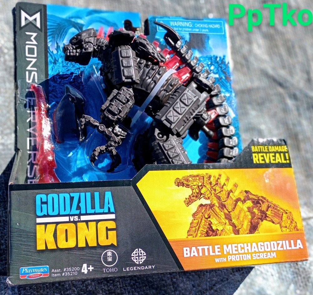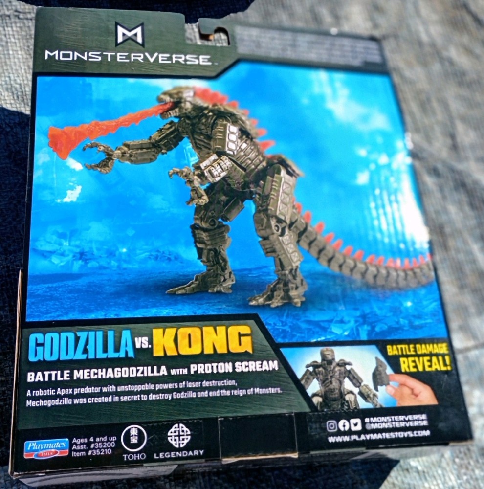 This is a Godzilla VS Kong BATTLE MECHAGODZILLA 6" action figure from the MONSTERVERSE series. The figure is based on the character MechaGodzilla from the movie "Godzilla vs. Kong" and the TV show "Godzilla the series." It is made of plastic, measures 5" in length, 6" in height, and 3" in width. The item is not vintage, features an adjustable design, and can be personalized. Bin: 🖤 black AY