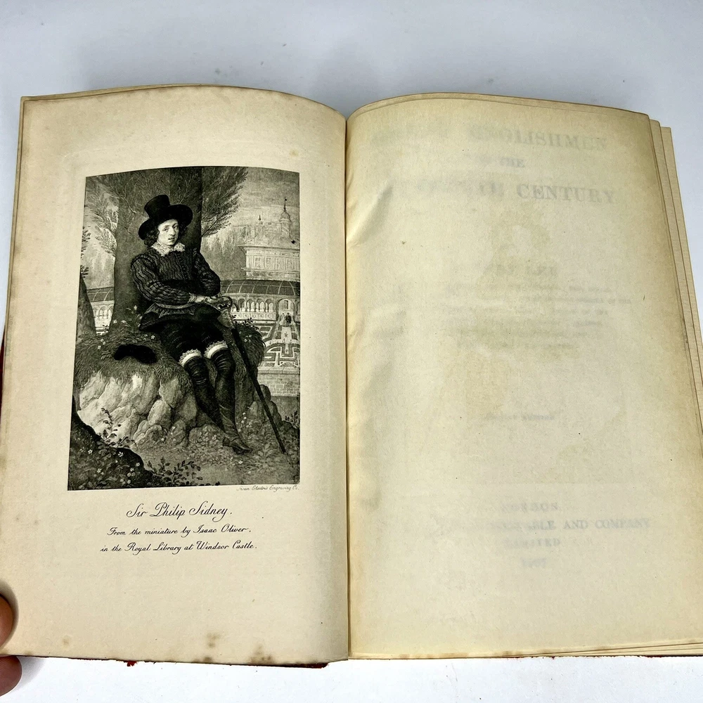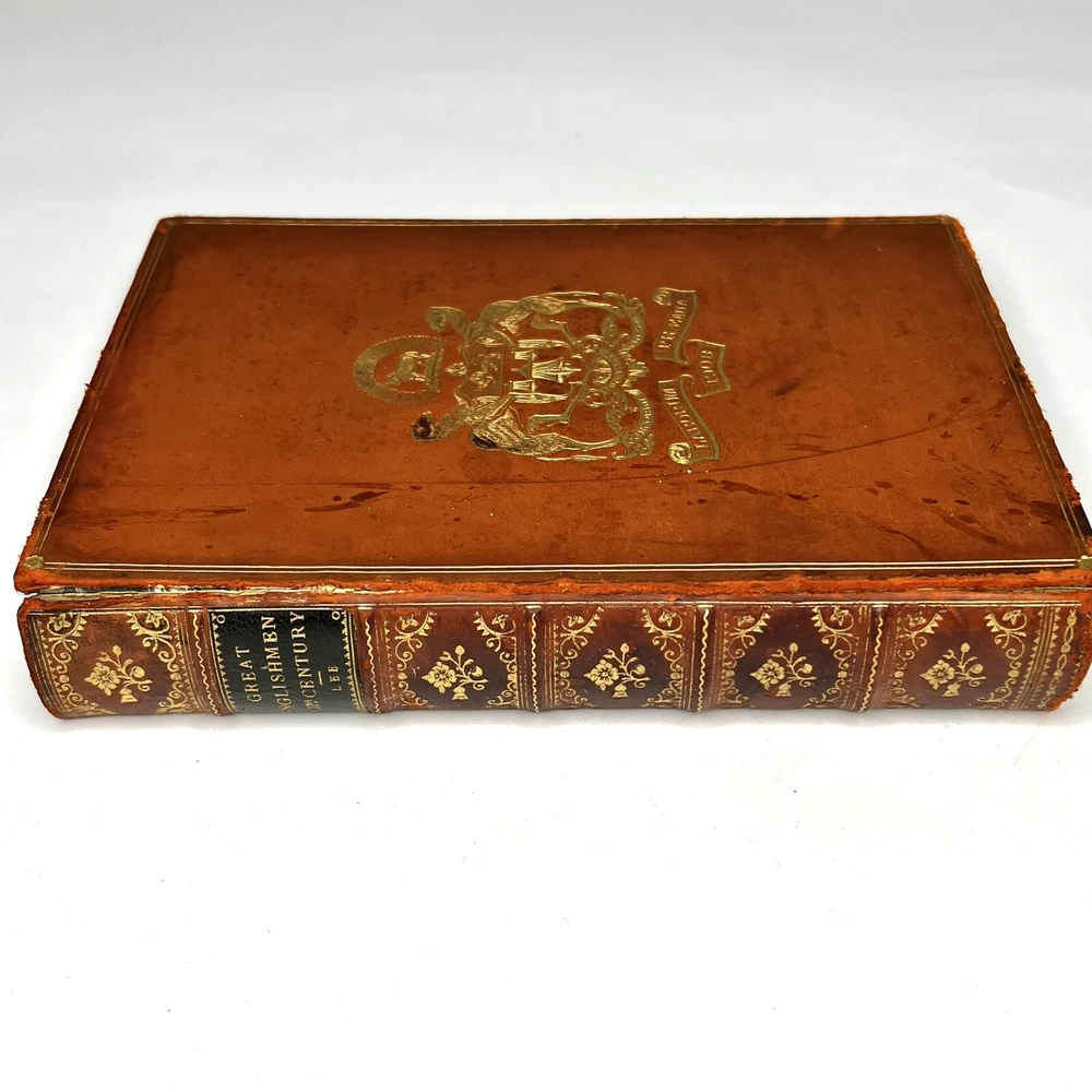 MERCHANT TAYLORS' COMPANY, GREAT ENGLISHMEN OF THE SIXTEENTH CENTURY BY SIDNEY LEE SECOND EDITION LONDON ARCHIBALD CONSTABLE AND COMPANY LIMITED 1907 Leather binding and marbled page edges. Cover and binding has some marks and damage. Pages are all intact. Please examine all photos for exact condition and use them as part of the description. Contact me if you have any questions. Thanks for looking.