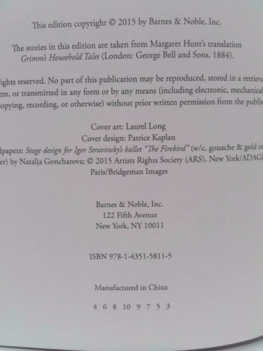 Grimm's Complete Fairy Tales (Barnes & Noble Omnibus Leatherbound Classics) (Barnes & Noble Leatherbound Classic Collection) by Grimm's Brothers Minor shelf and handling wear, overall a clean solid copy with minimal signs of use. Secure packaging for safe delivery.