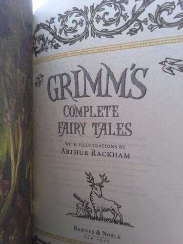 Grimm's Complete Fairy Tales by Jacob Grimm Shelf and handling wear to cover and binding, with general signs of previous use. Wear commensurate with age and use. Clean unmarked copy. Light bumping visible to corners of boards and ends of spine strip. Light scuffing and smudging to boards and spine strip. Secure packaging for safe delivery.