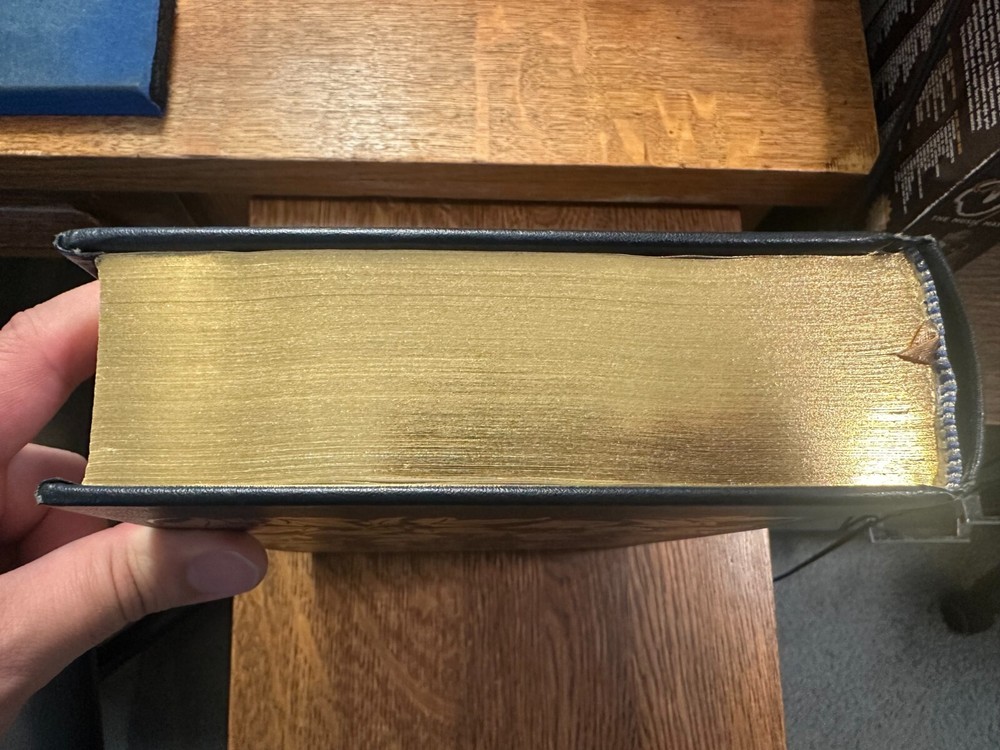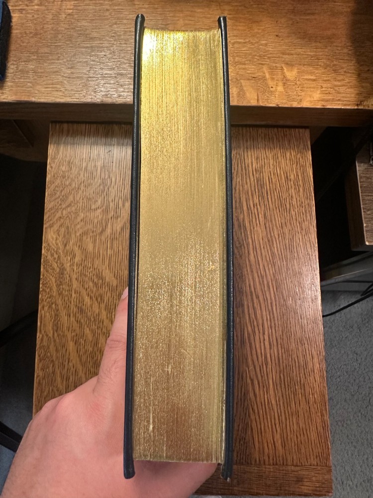 Seller did not include photo of the writing inside the cover in red ink, just mentioned that there was a name written on the first page. Would have been helpful if that photo was included- felt deliberately left out. Otherwise item exactly as described and packaged well! Thanks!